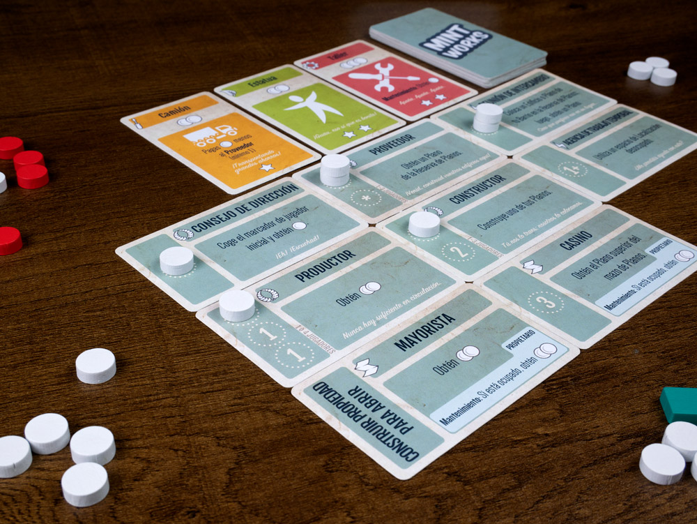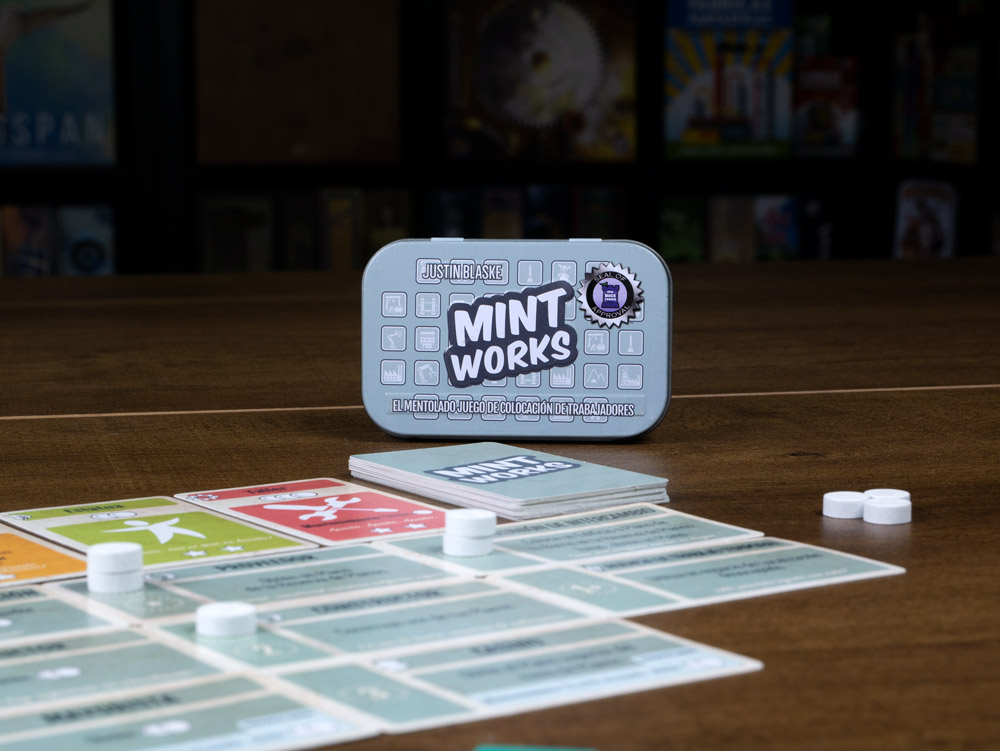 Mint Works un juego directo y ligero de colocación de trabajadores. Su tamaño compacto hace que lo puedas meter en el bolsillo y llevar a cualquier parte. Sus reglas simples lo hacen fácil para introducir a nuevos jugadores al género de colocación de trabajadores.