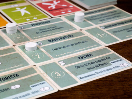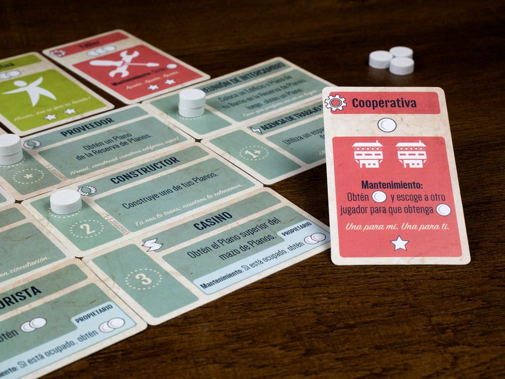 Durante la partida cada jugador tendrá una cantidad limitada de Fichas, las cuales representan sus trabajadores. Los jugadores usan estas fichas para conseguir más fichas, ser el jugador inicial o comprar y construir planos. Los planos son la manera de conseguir puntos. Algunos planos darán solo puntos, otros darán poderes extra al propietario.
