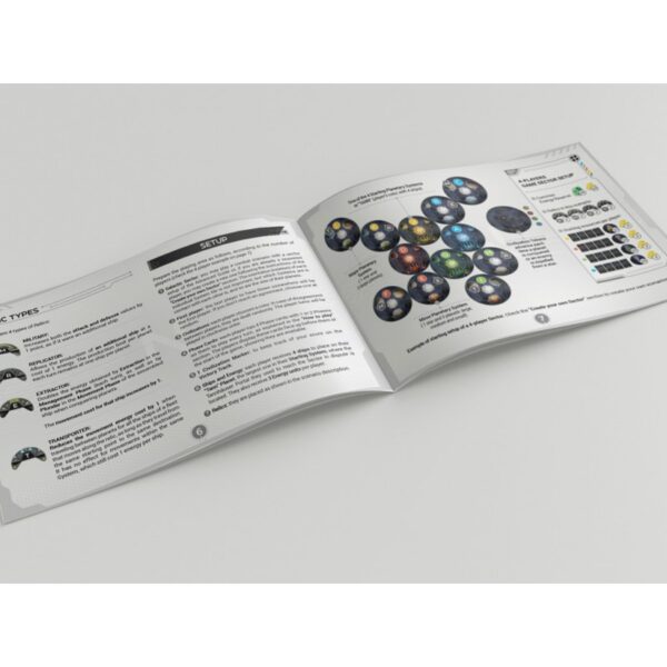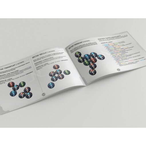 La experiencia de juego se puede mejorar opcionalmente con las 120 miniaturas de naves espaciales y el tapete espacial.