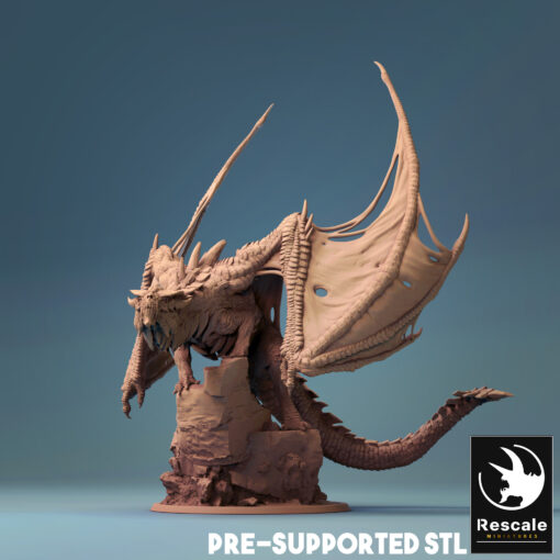 La miniatura representa a un dragón de magma adulto en una peana de dos pulgadas.
