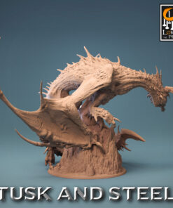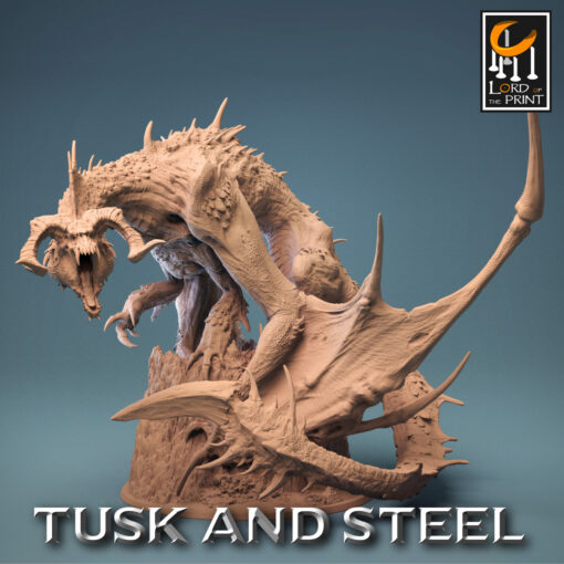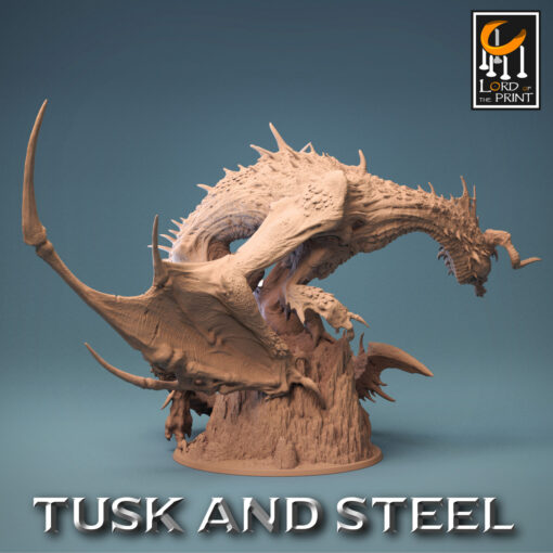 La miniatura representa un dragón verde altamente detallado con una peana de 4 pulgadas y escalado a 28mm.
