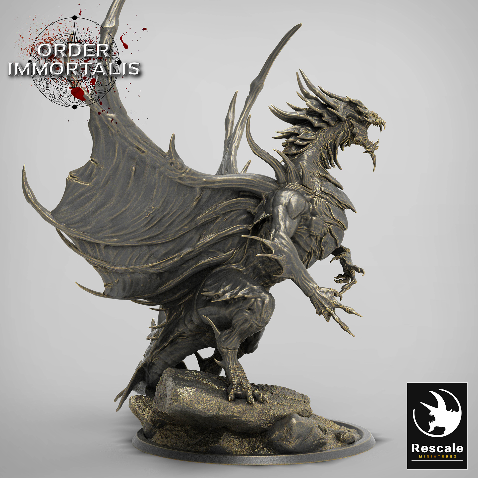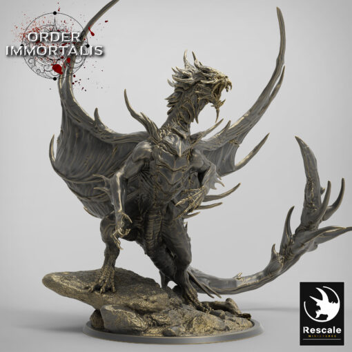 La miniatura representa un Dragón de sangre adulto en peana de tres pulgadas.