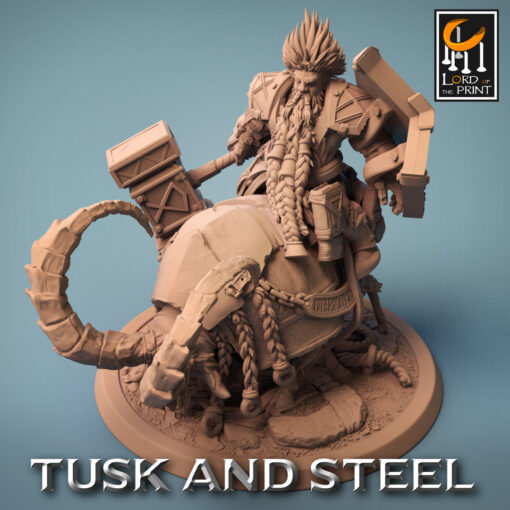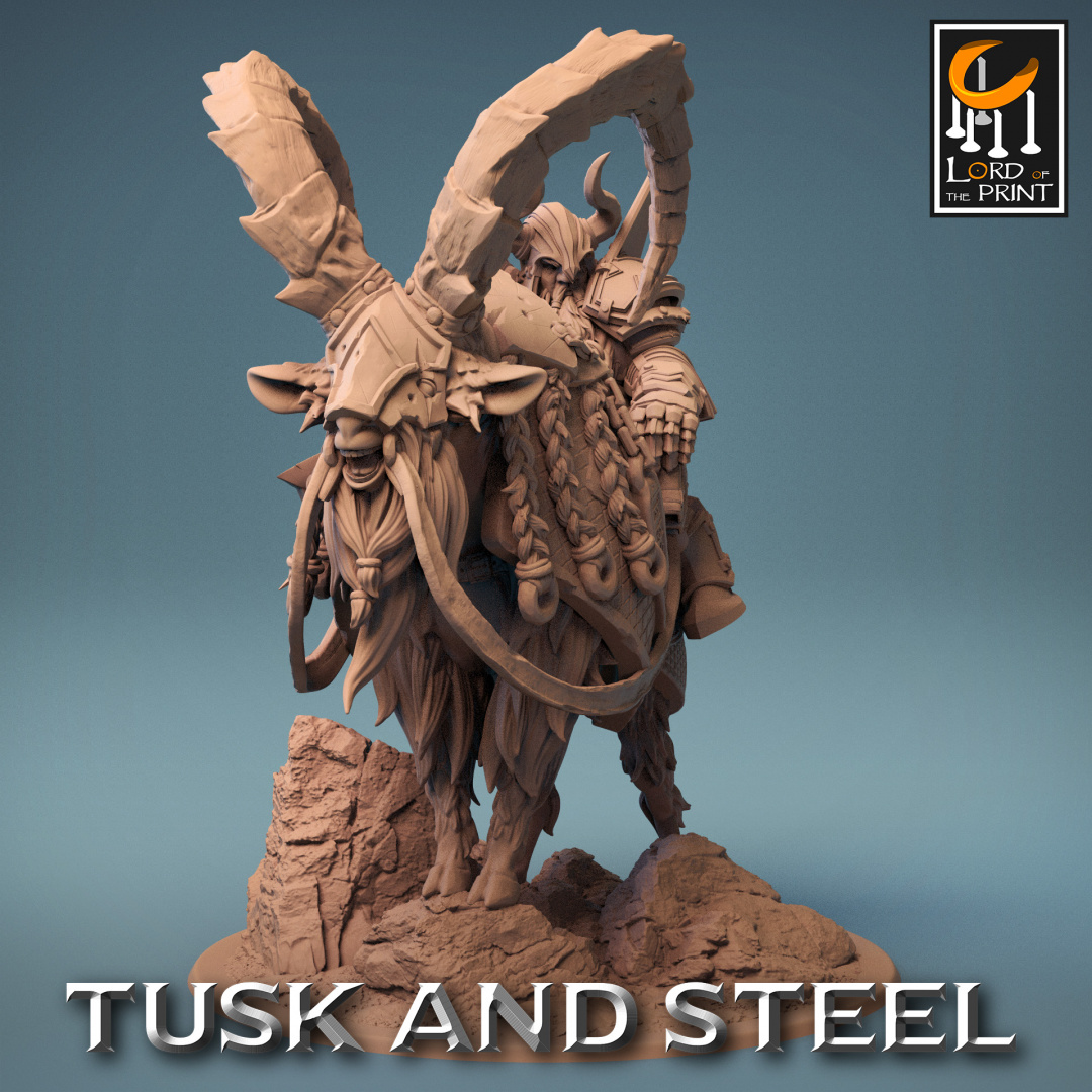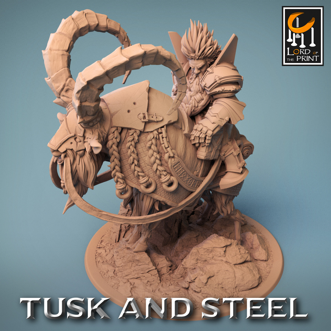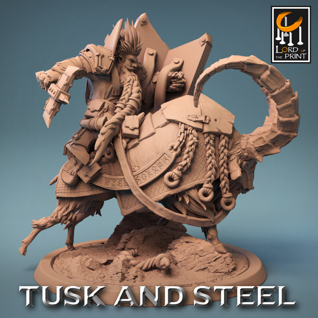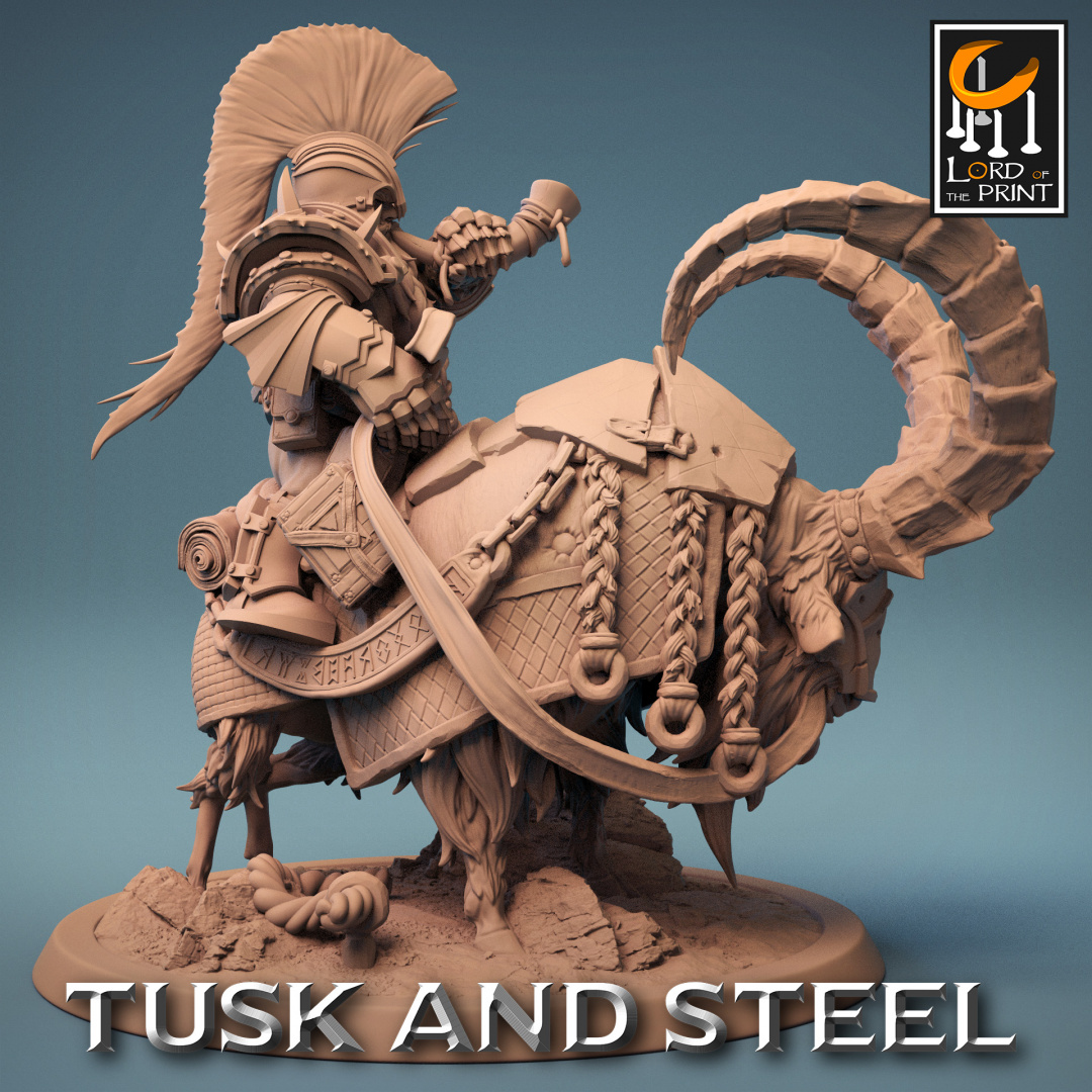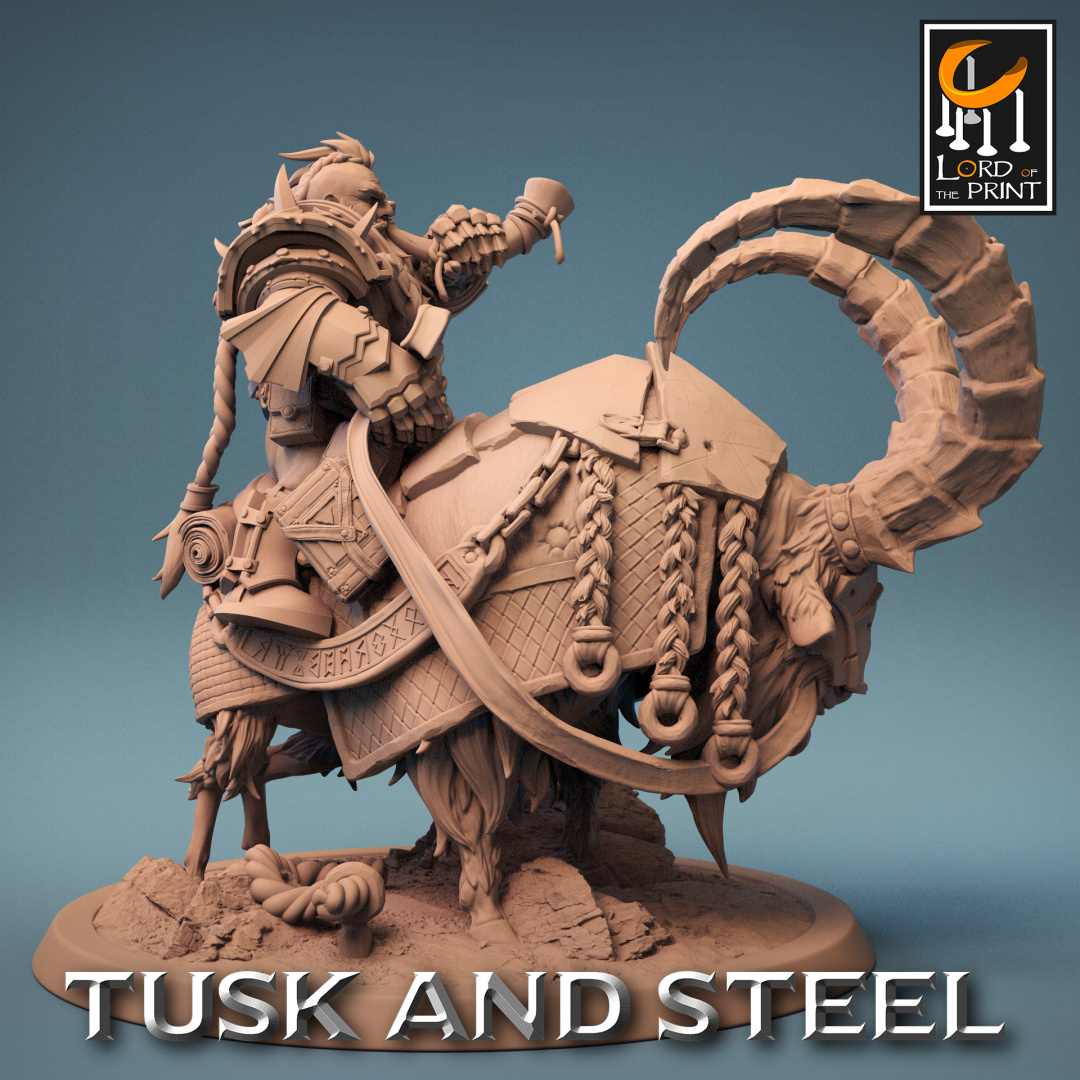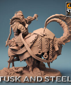 La miniatura representa a un soldado en enano montando una cabra en una peana de 2 pulgada y escalado a 28mm.