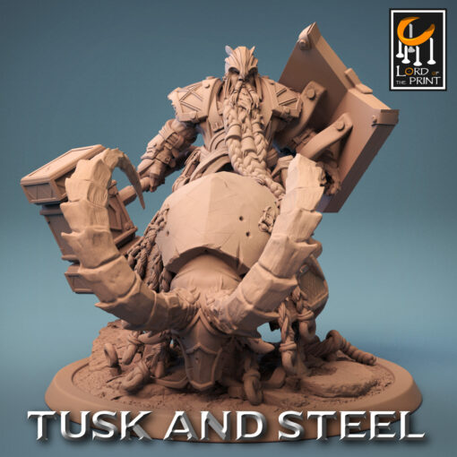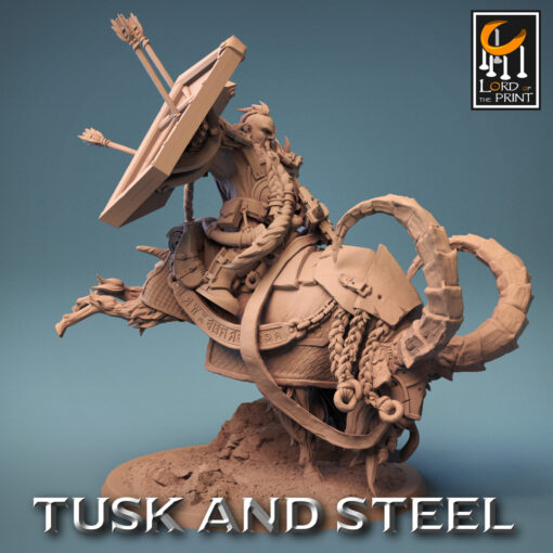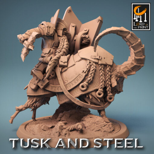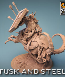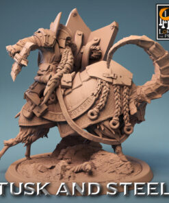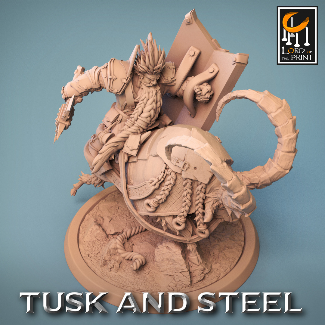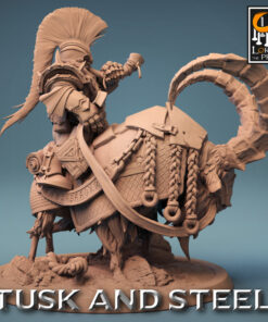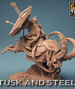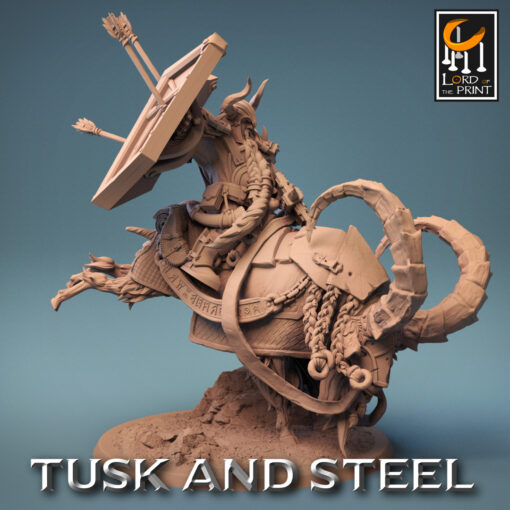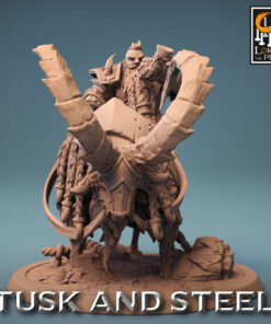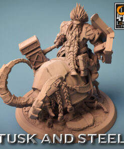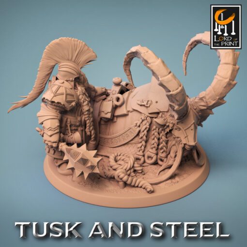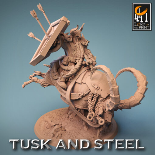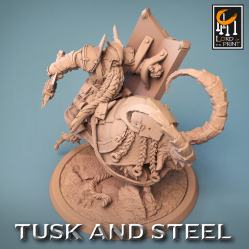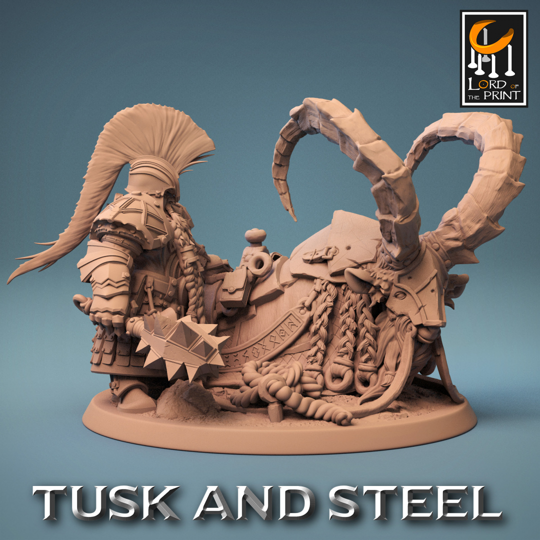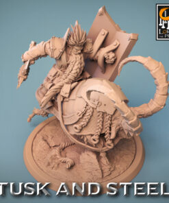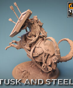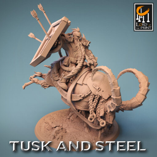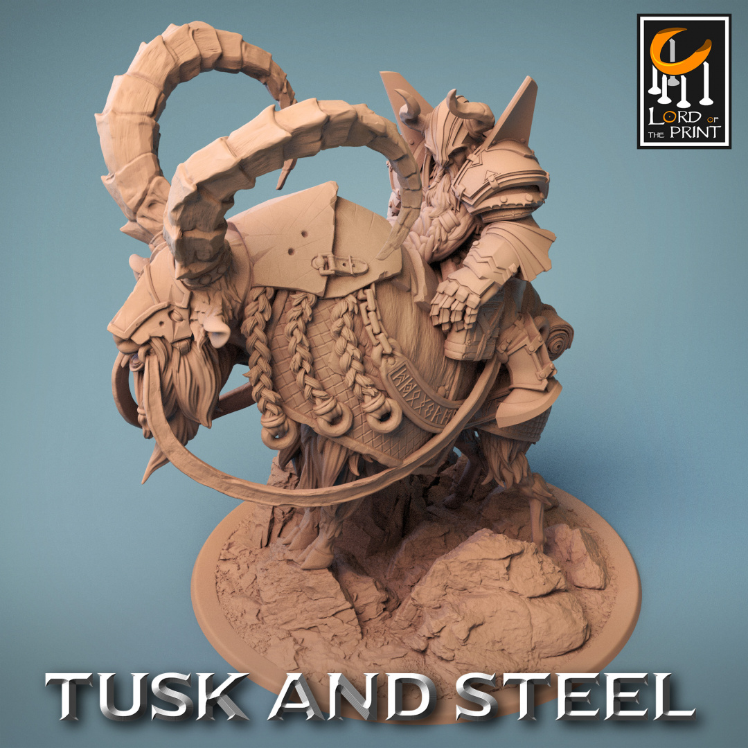 La miniatura representa a un soldado en enano montando una cabra en una peana de 2 pulgada y escalado a 28mm.
