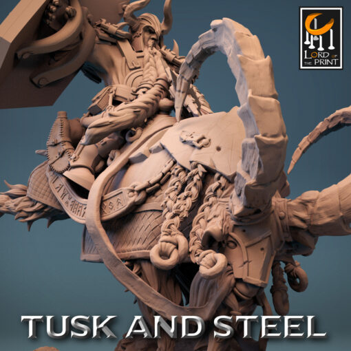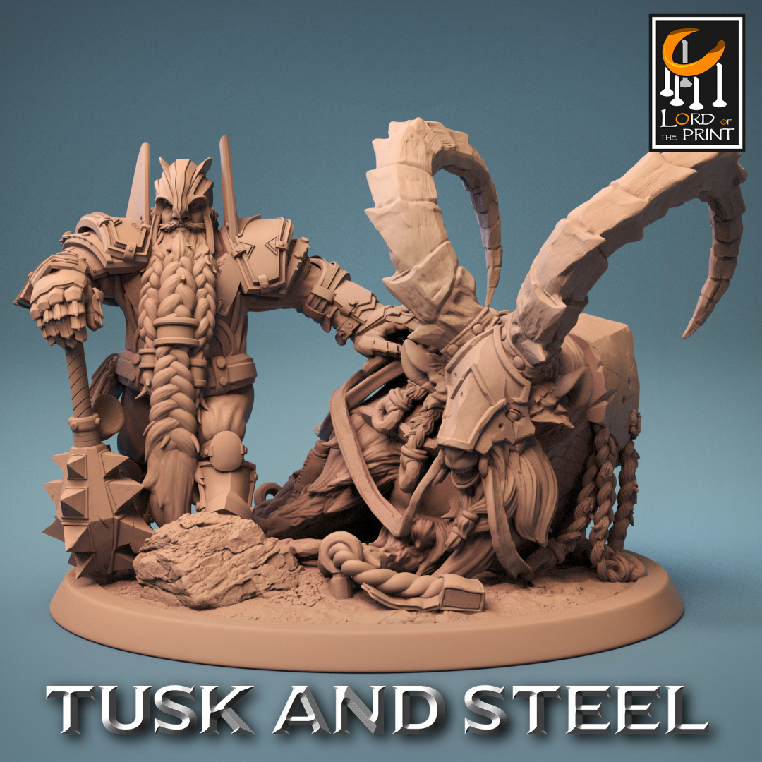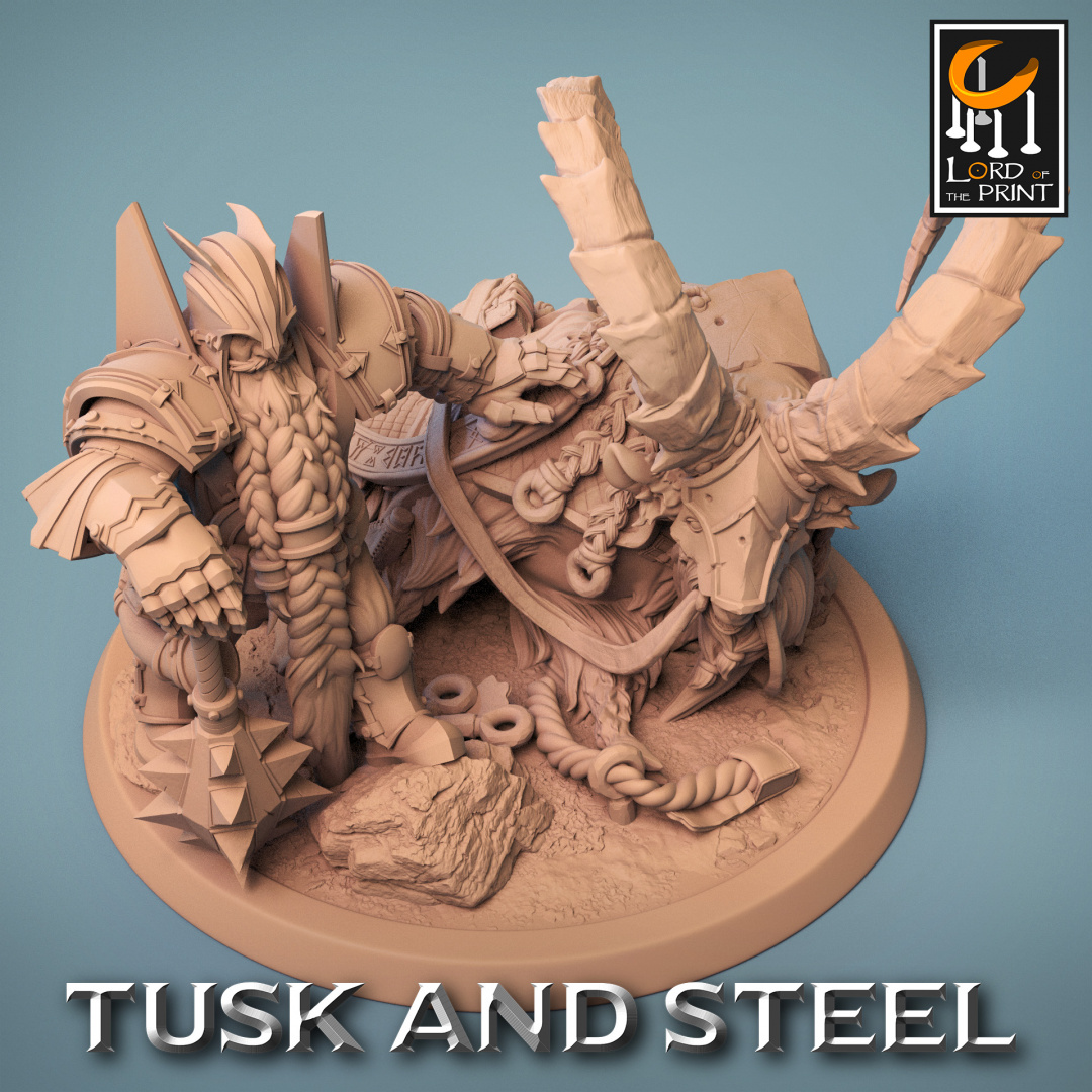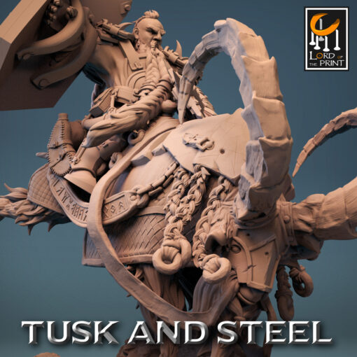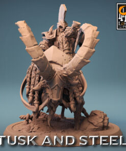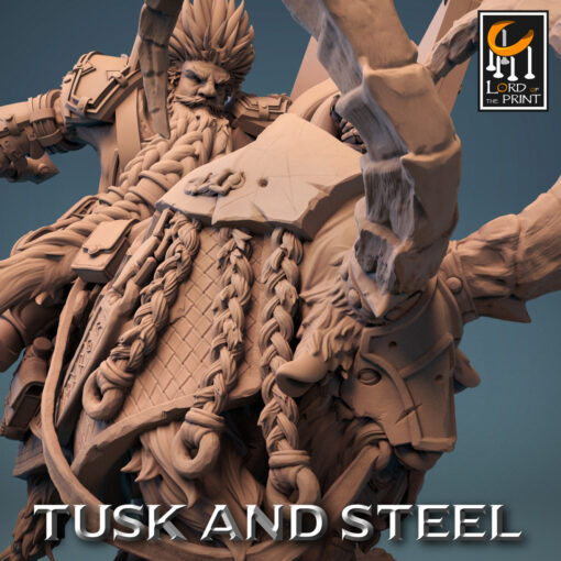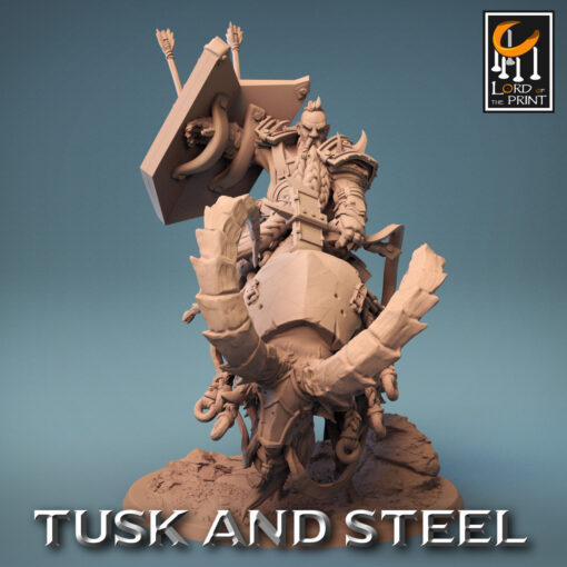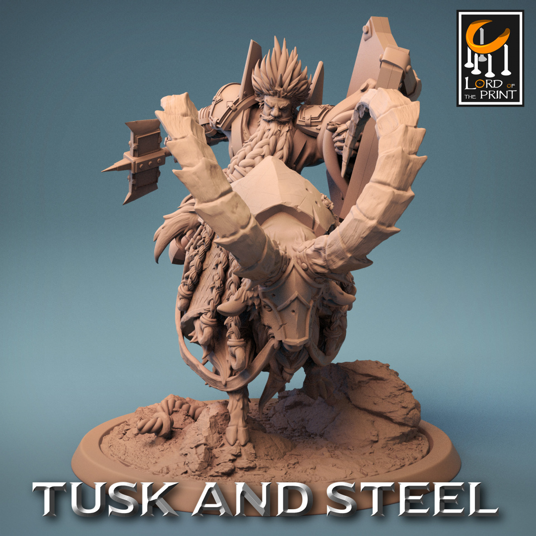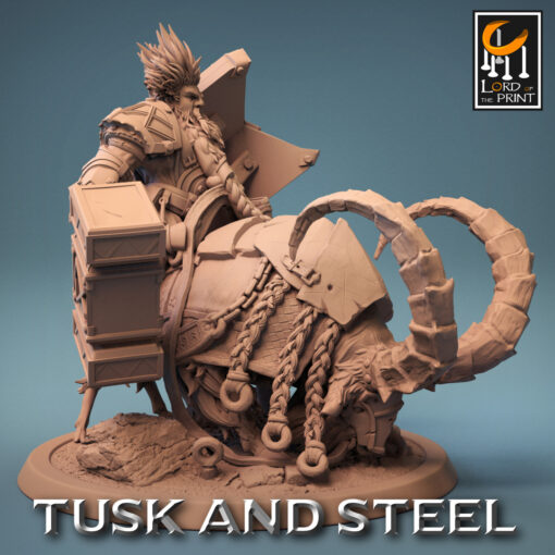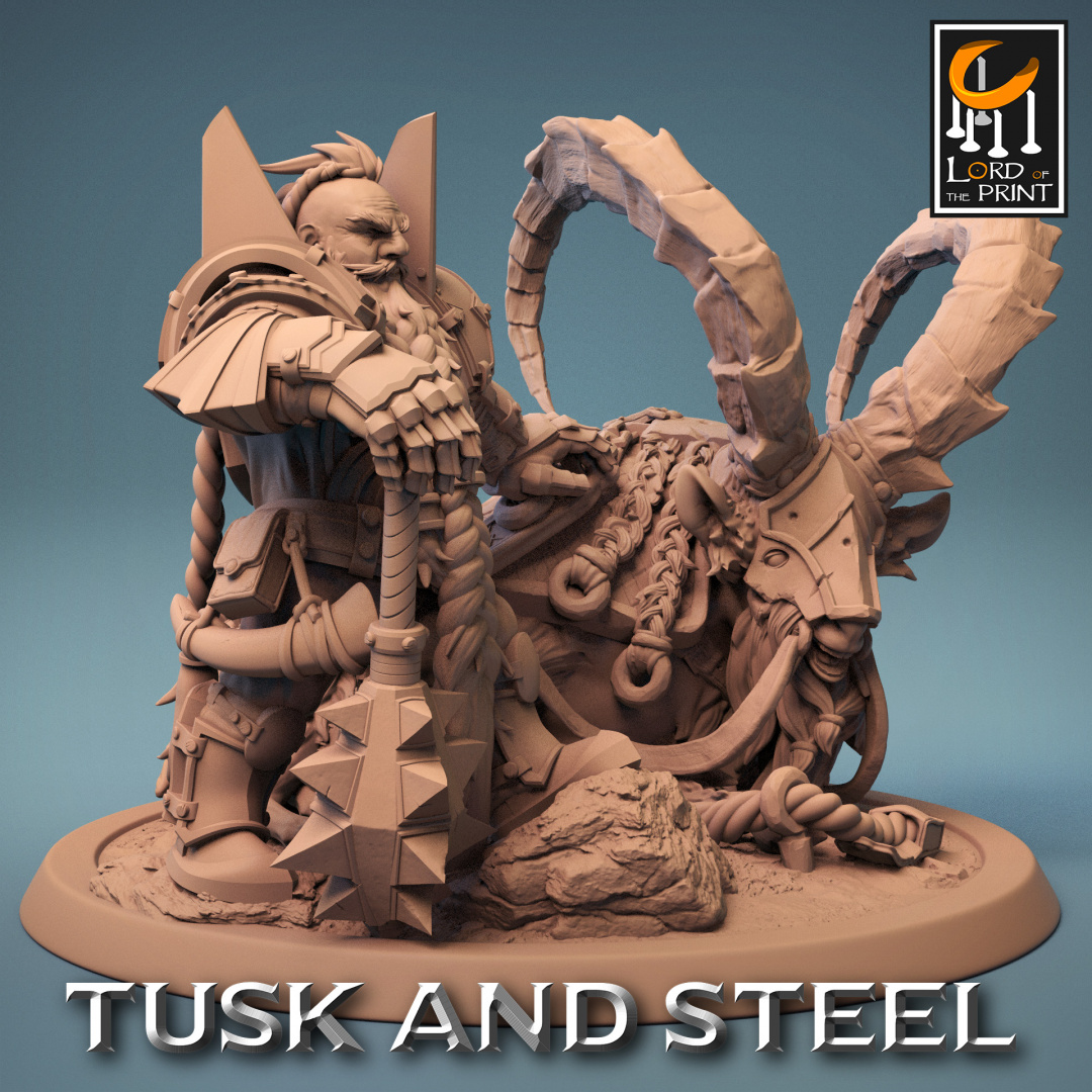La miniatura representa a un soldado en enano montando una cabra en una peana de 2 pulgada y escalado a 28mm.