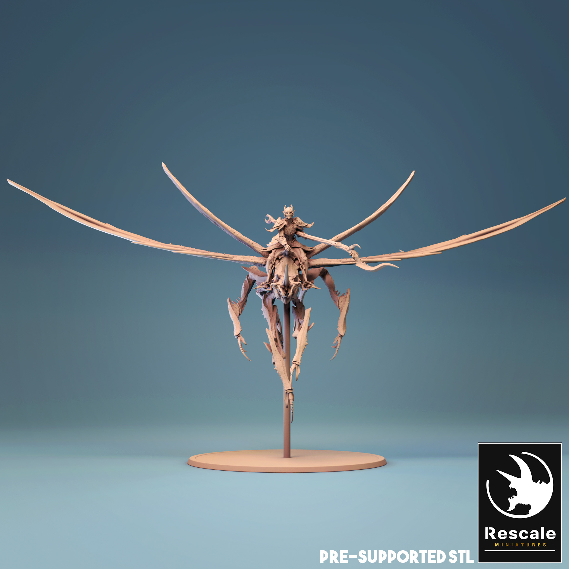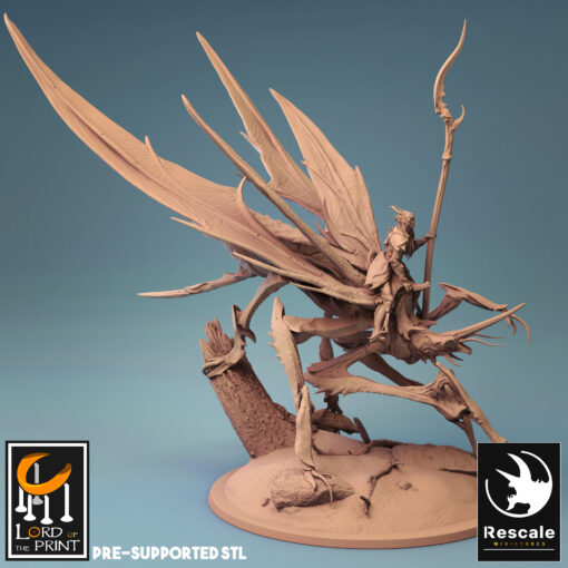 La miniatura representa un jinete élfico de insectos, con una base de 100mm.