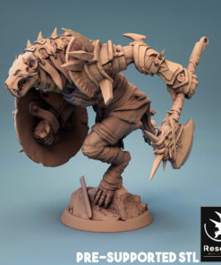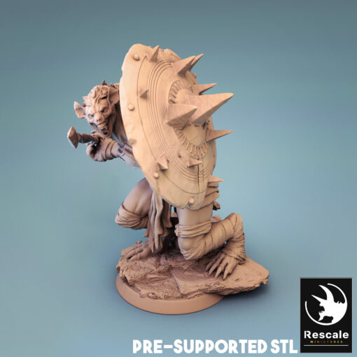 La miniatura representa a un Gnoll, con una base de 25mm.