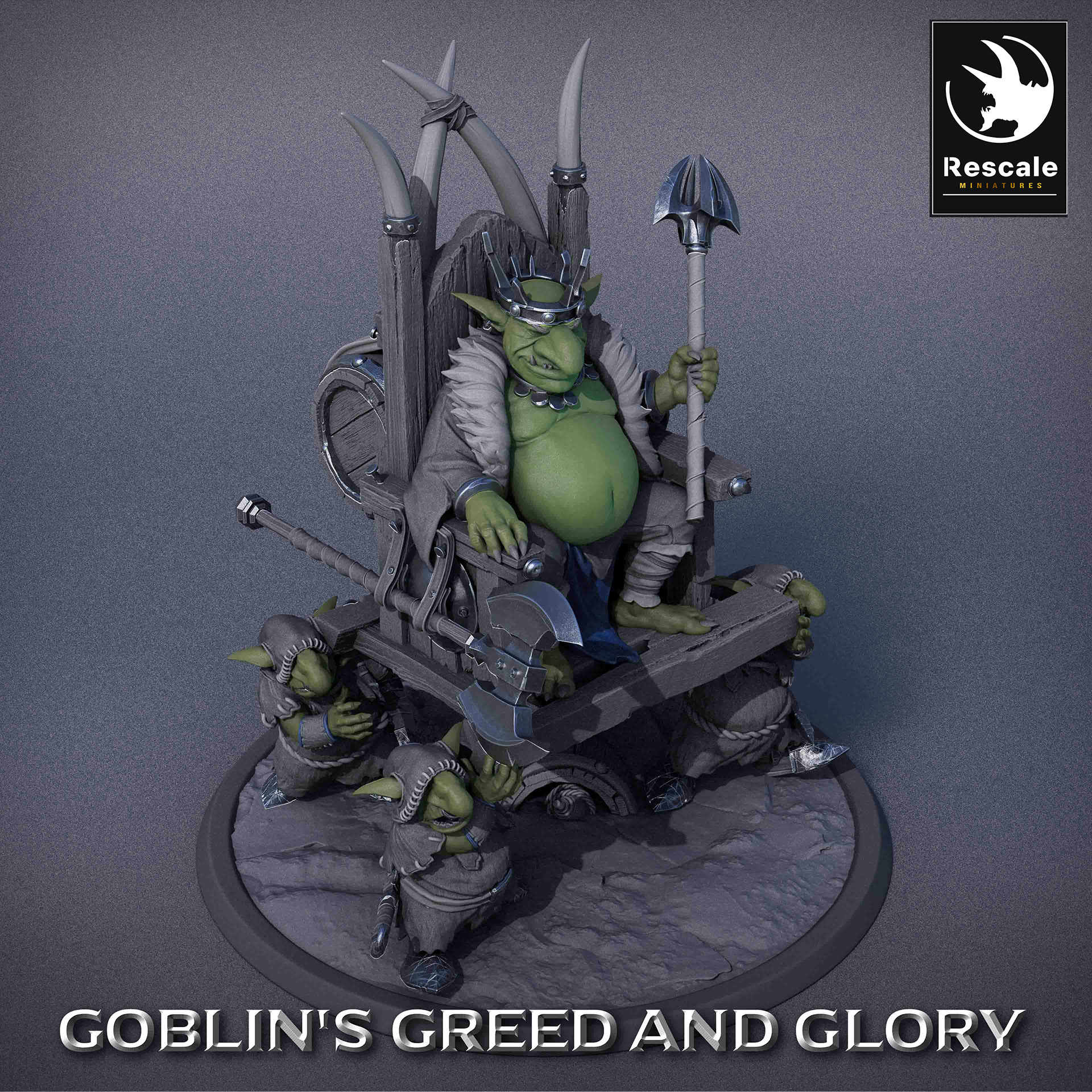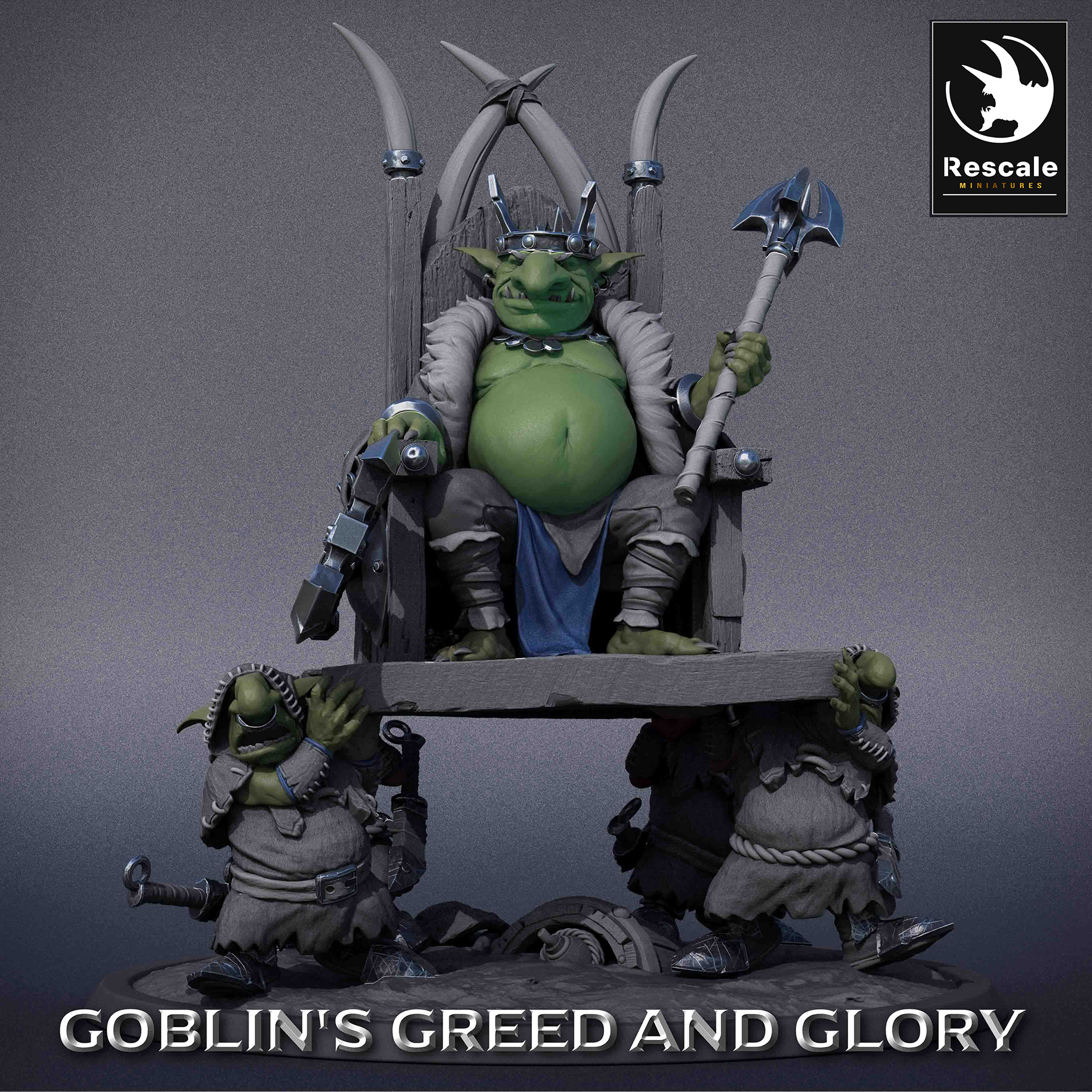 La miniatura representa al rey goblin con una peana de 2 pulgadas en pie y de 3 pulgadas en el trono y escalado a 28mm.