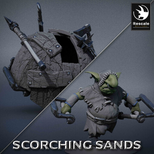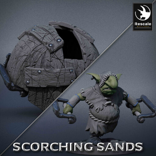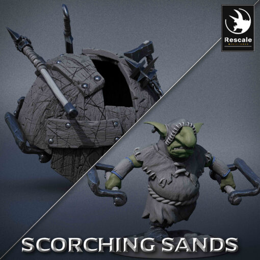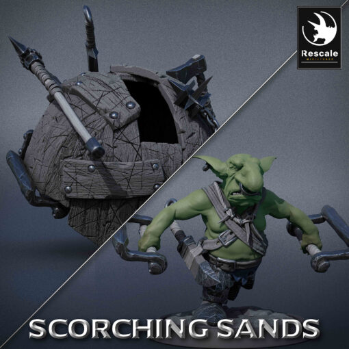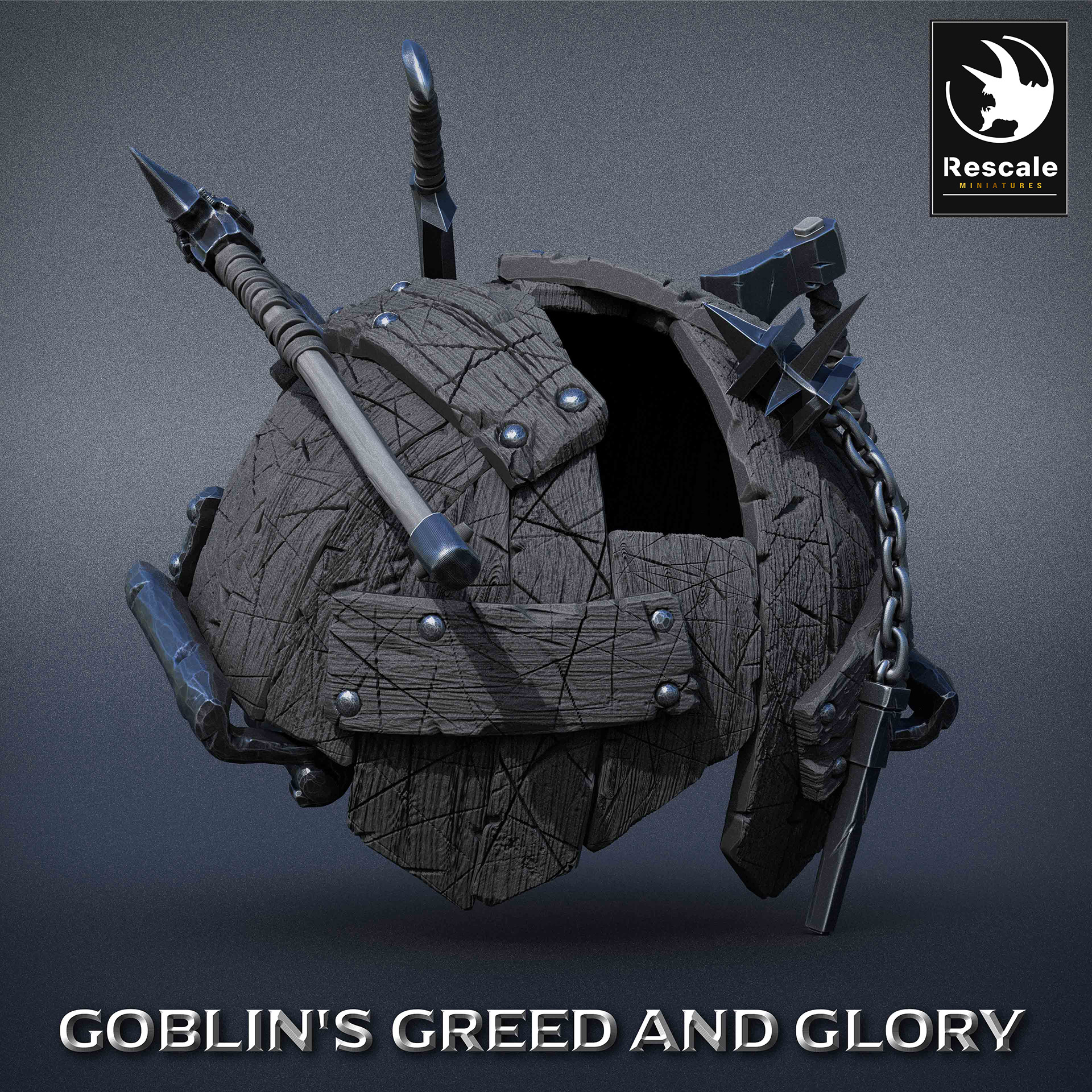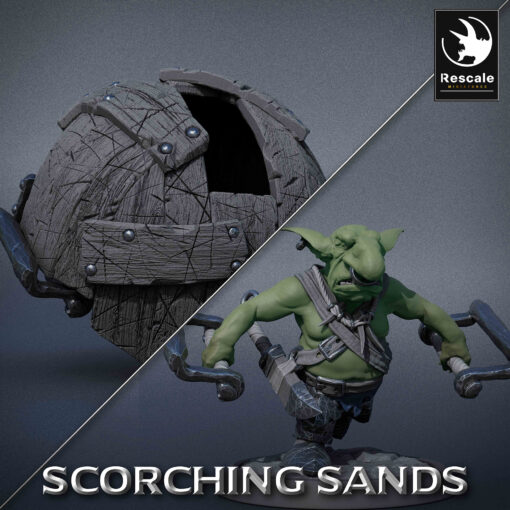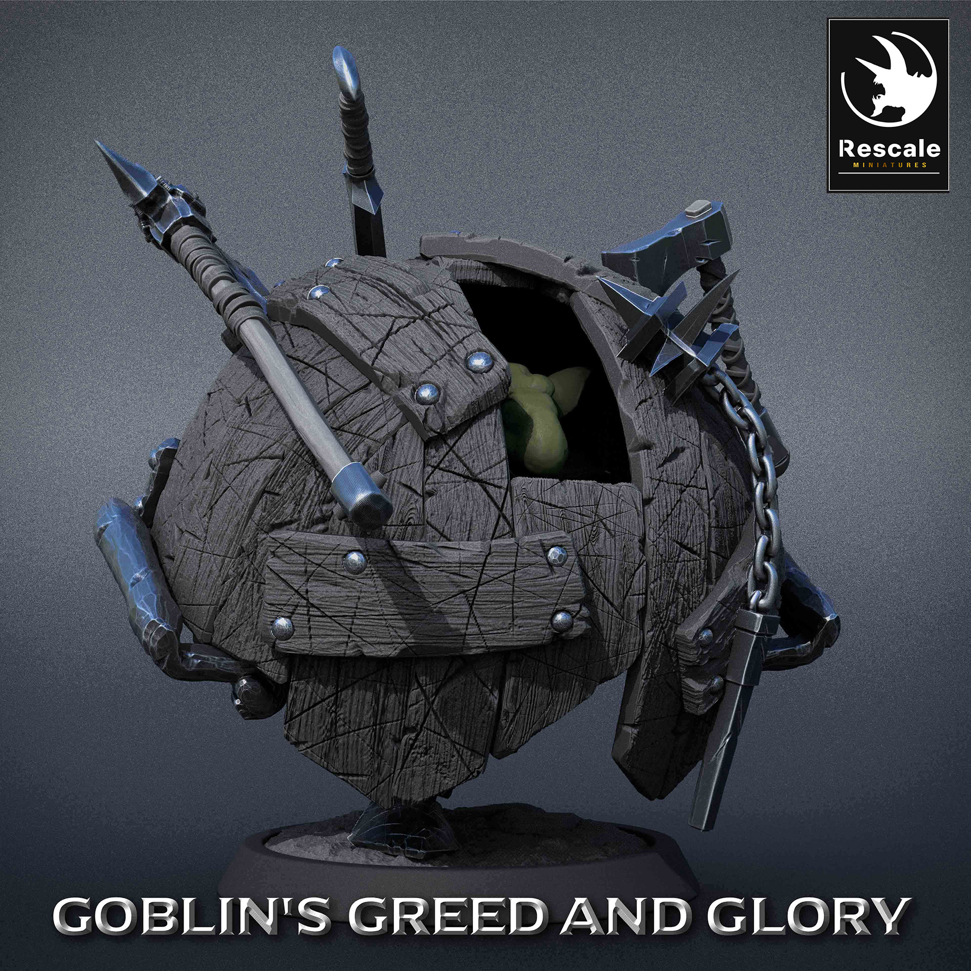 La miniatura representa a un goblin con una peana de 1 pulgada y una estructura de «tanque» escalado a 28mm.
