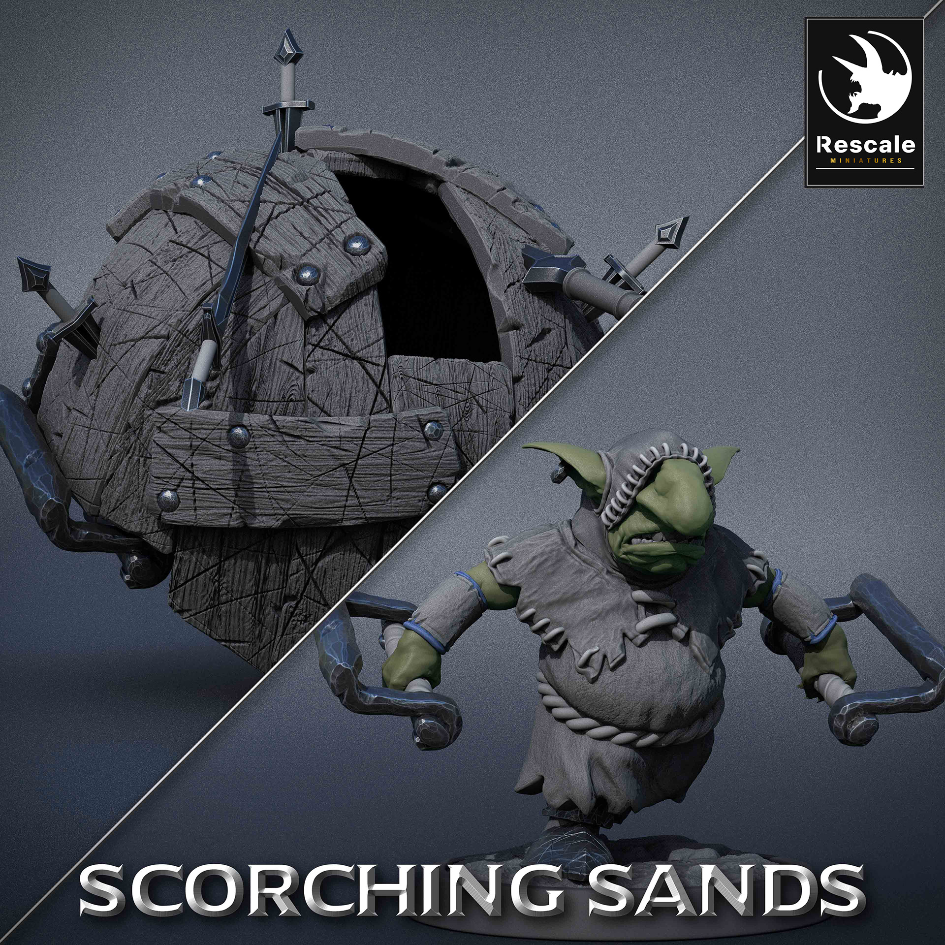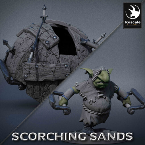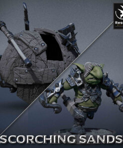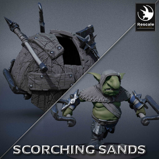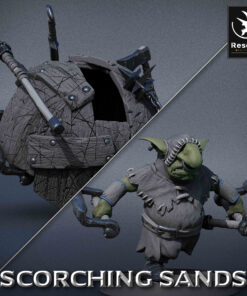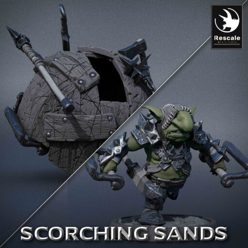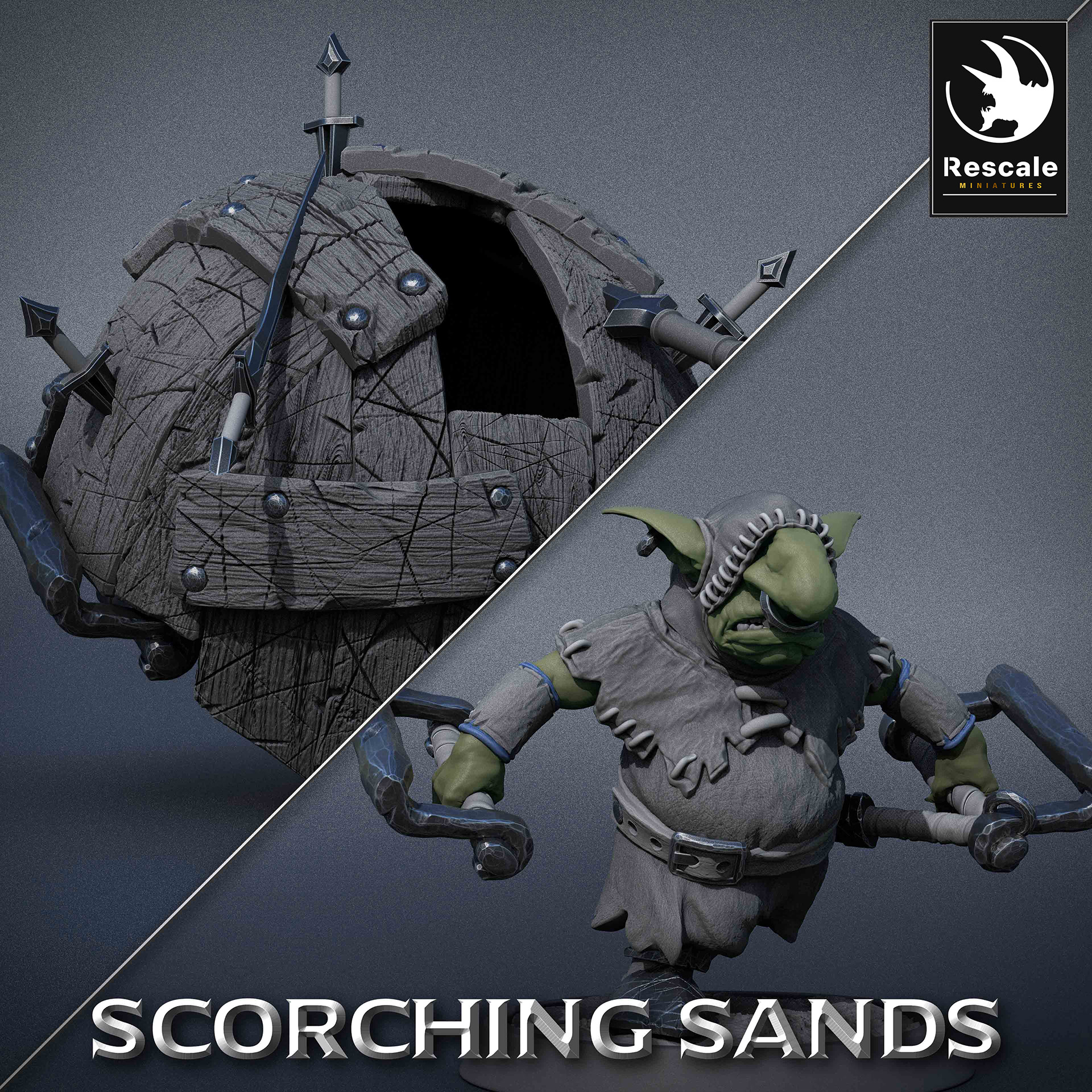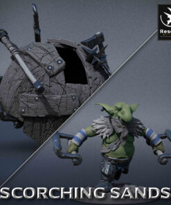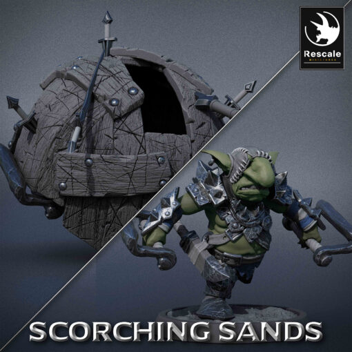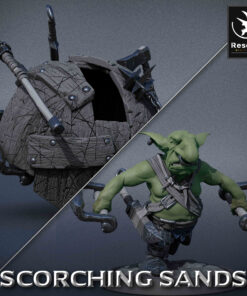 La miniatura representa a un goblin con una peana de 1 pulgada y una estructura de «tanque» escalado a 28mm.