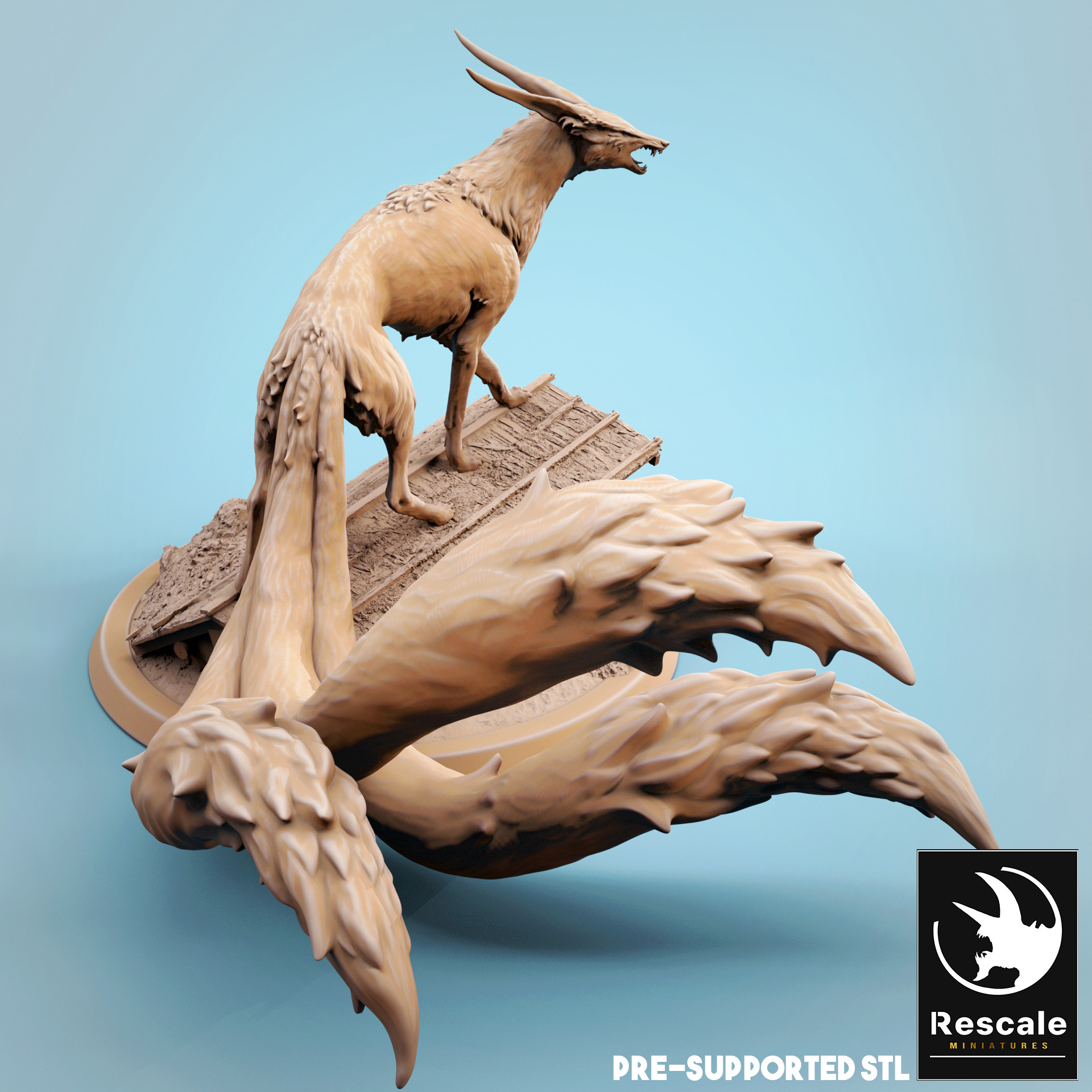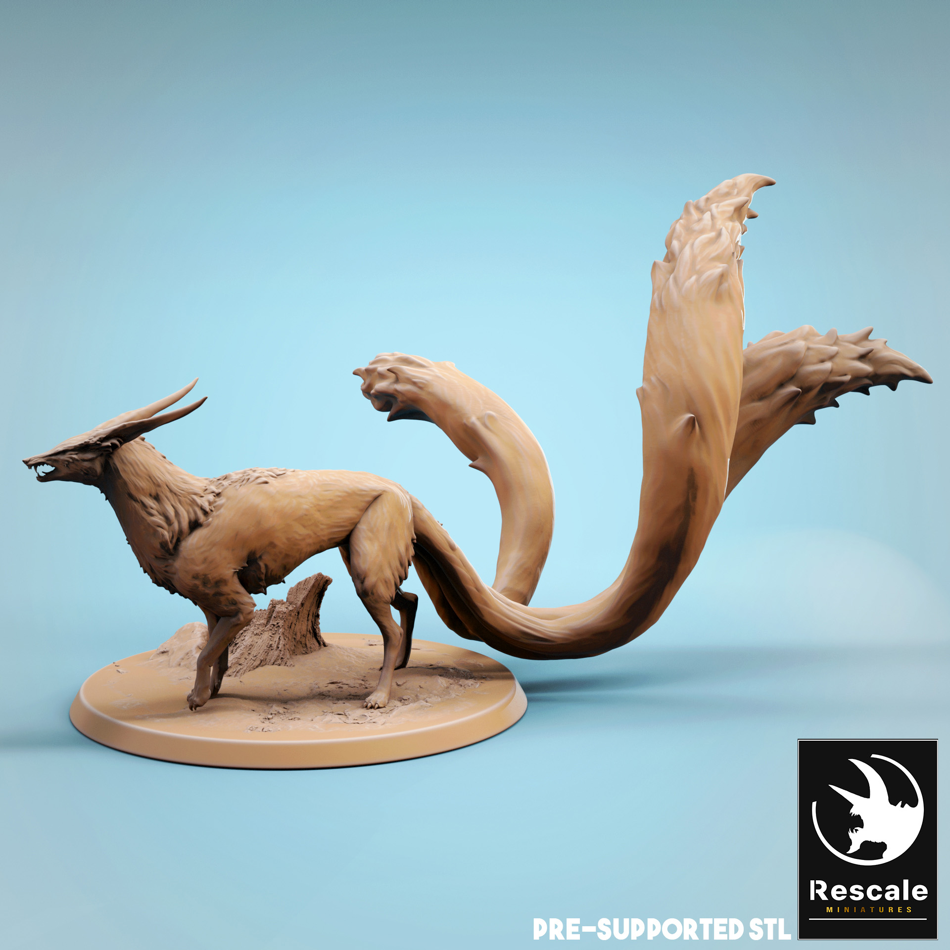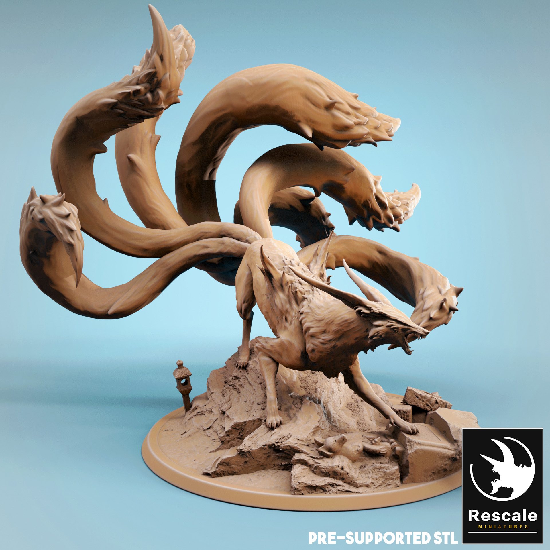 La miniatura representa un Kitsune en peana de 2 pulgadas.