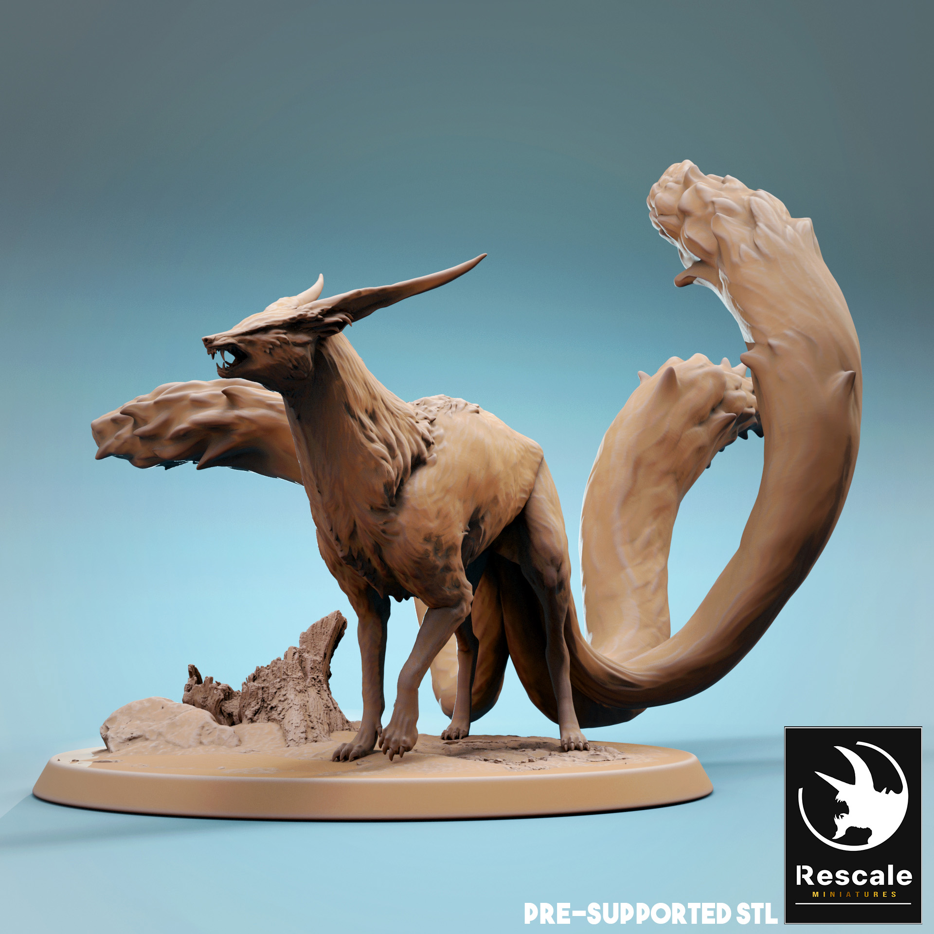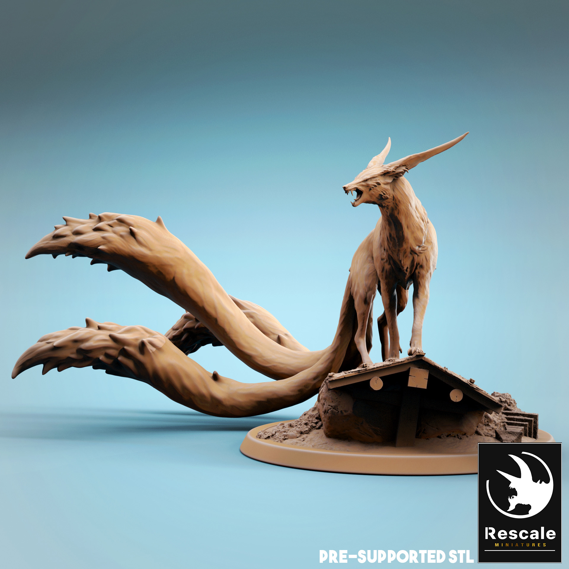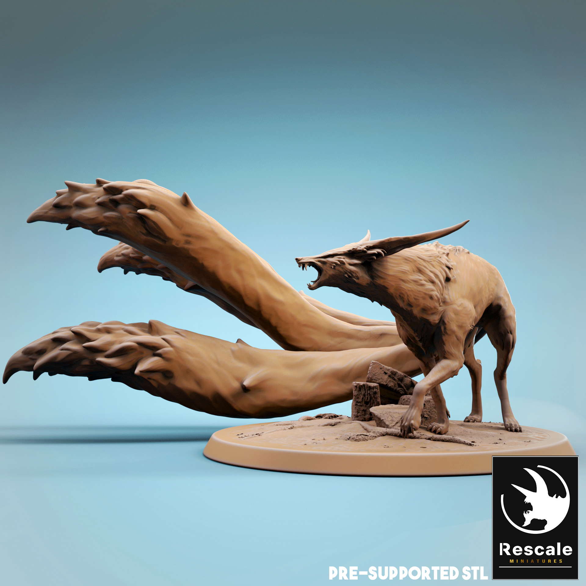 La miniatura representa un Kitsune en peana de 2 pulgadas.
