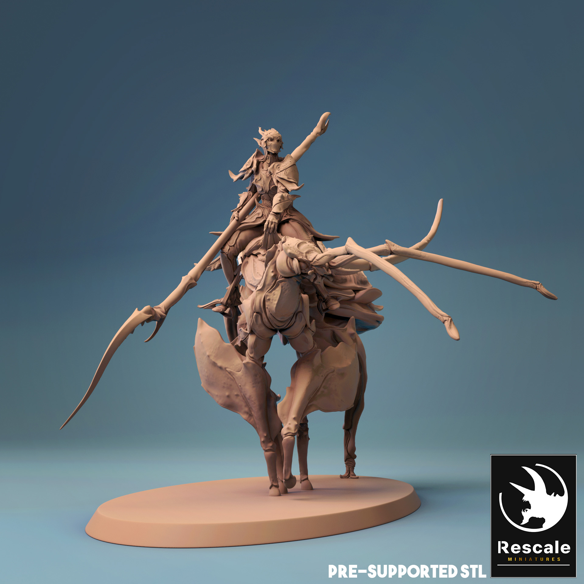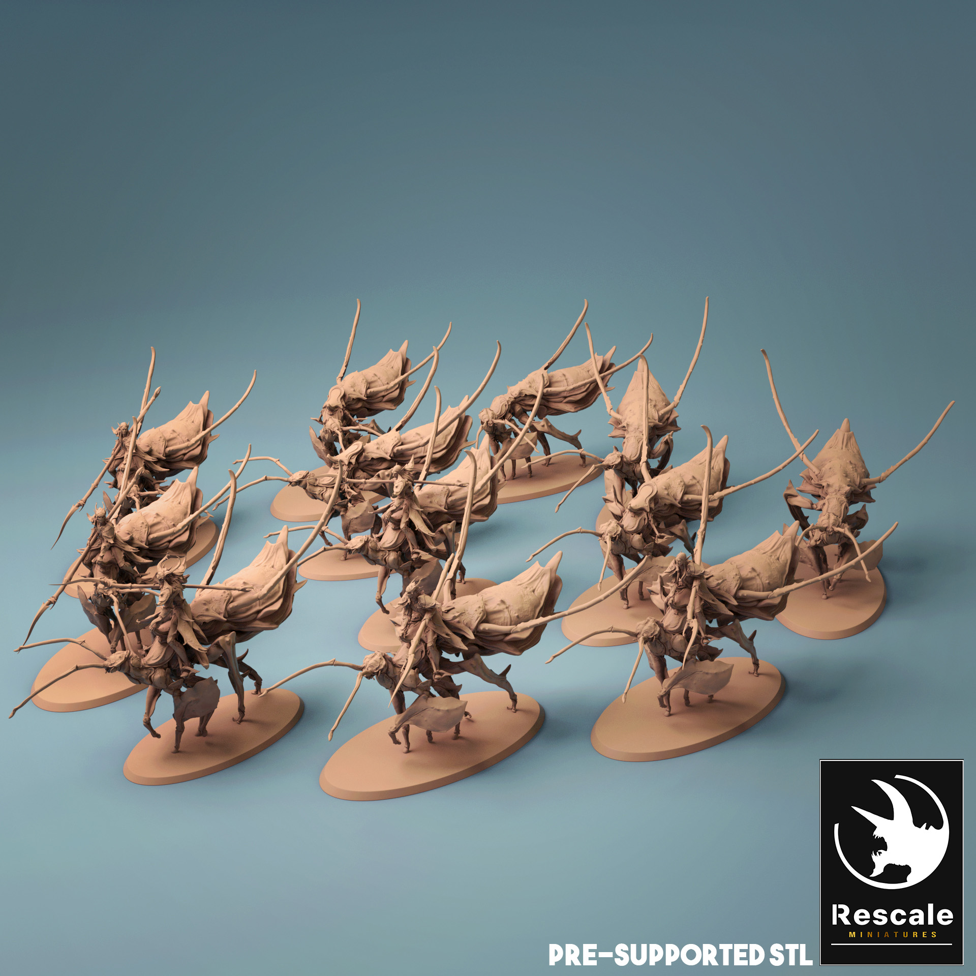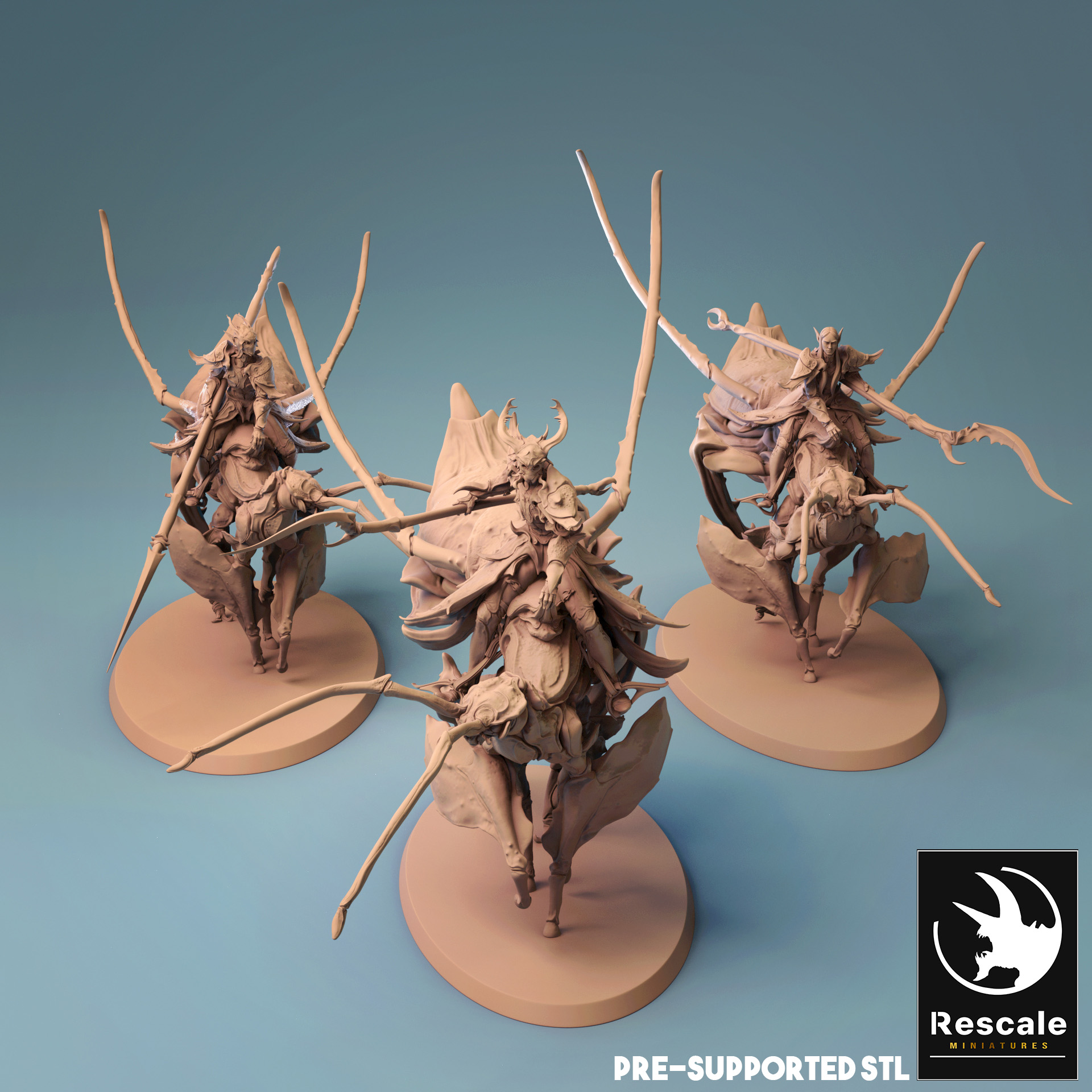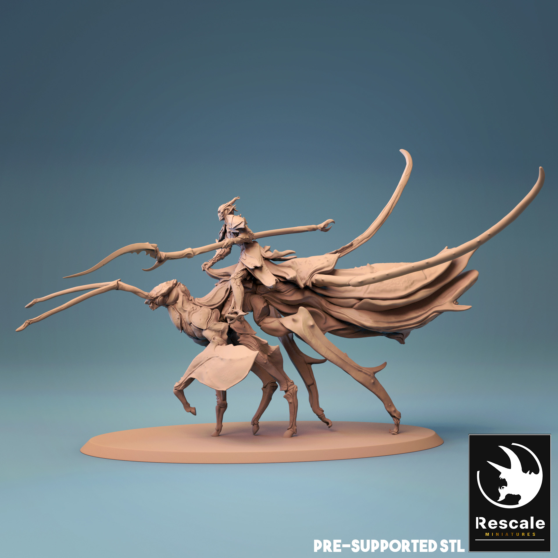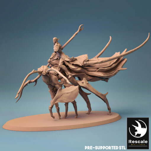 La miniatura representa un jinete élfico de insectos, con una base de 100mm.