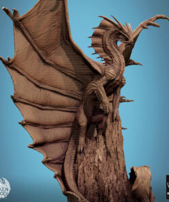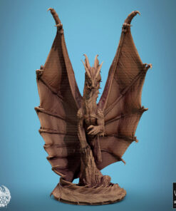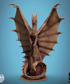 La miniatura representa un dragón dorado, en peana de 100 mm de diámetro.
