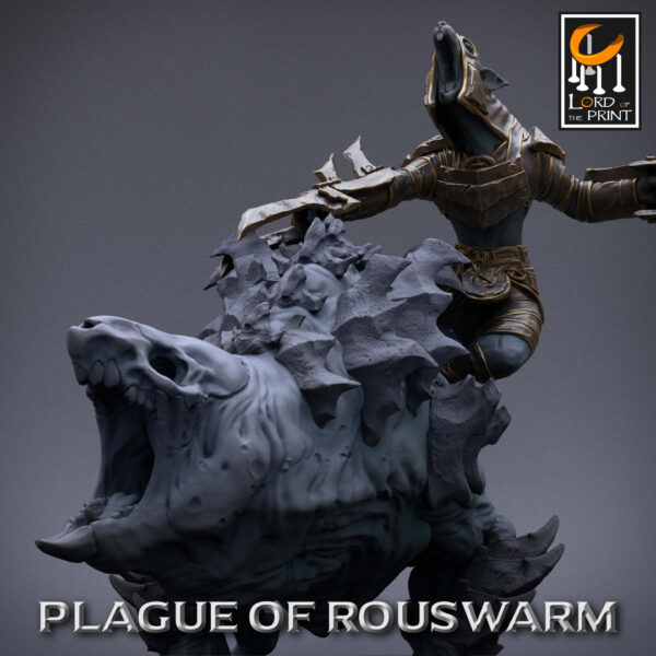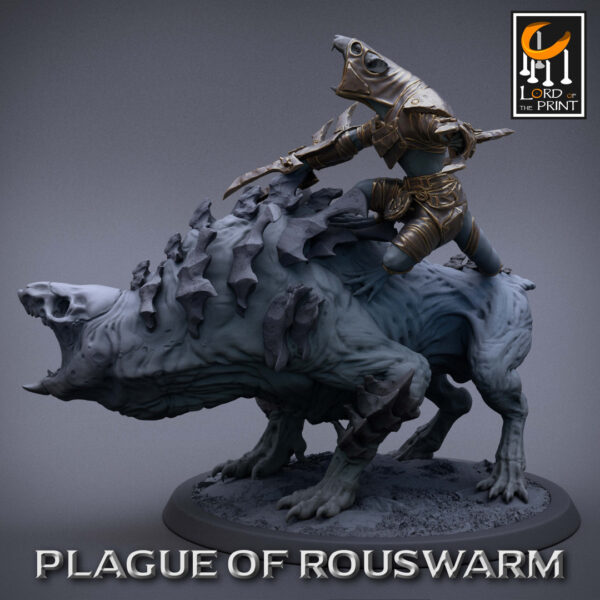 La miniatura representa a un jinete rata del enjambre con una peana de 1 pulgada y escalado a 28mm.