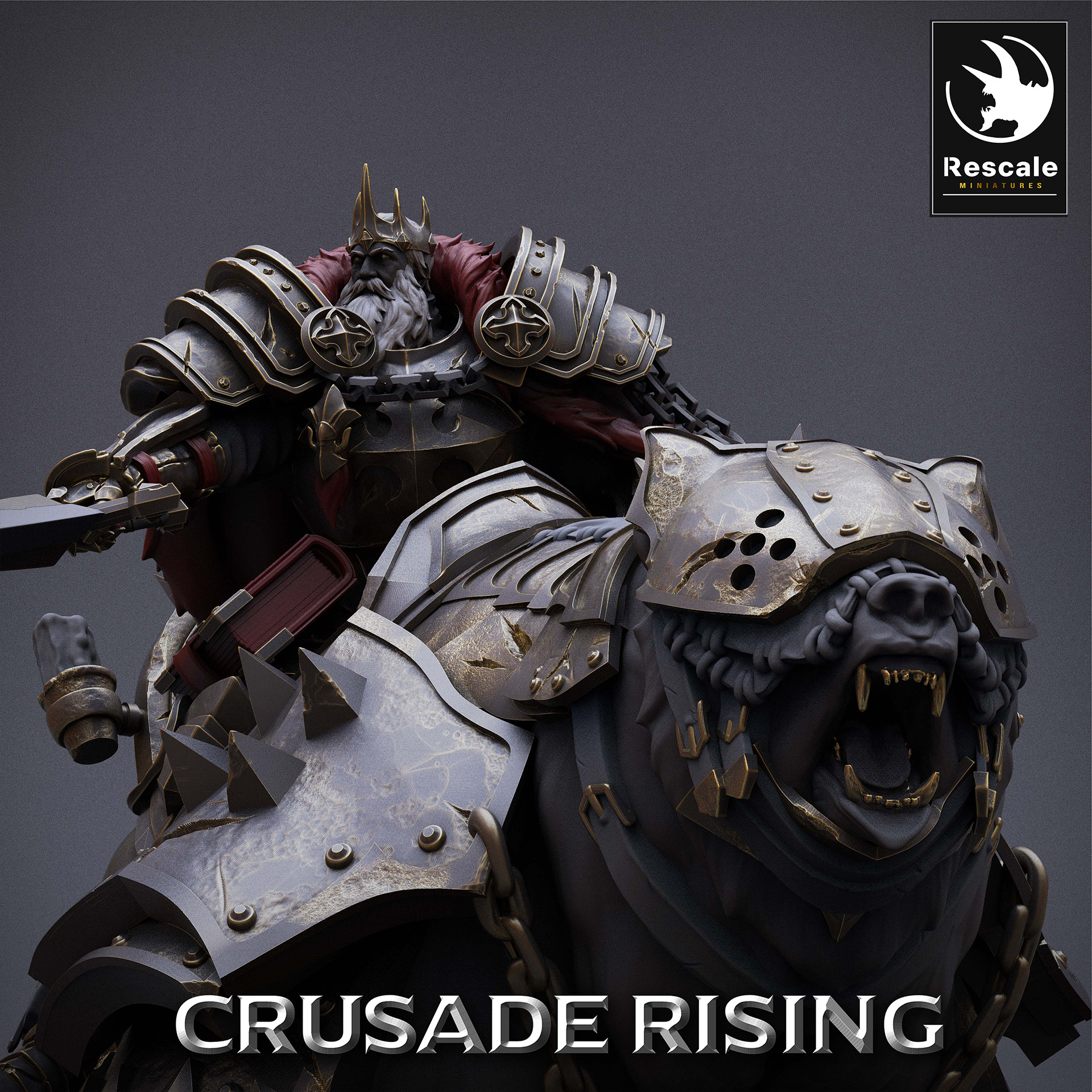 La miniatura representa al Rey de los templarios montado en oso con una peana de 1 pulgada y escalado a 28mm.