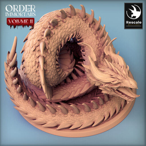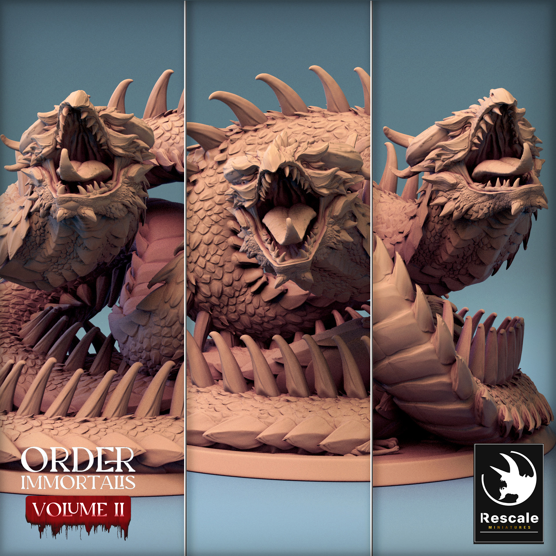 La miniatura representa a una serpiente gigante, en peana de tres pulgadas.