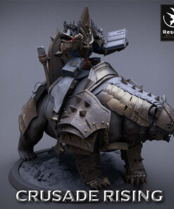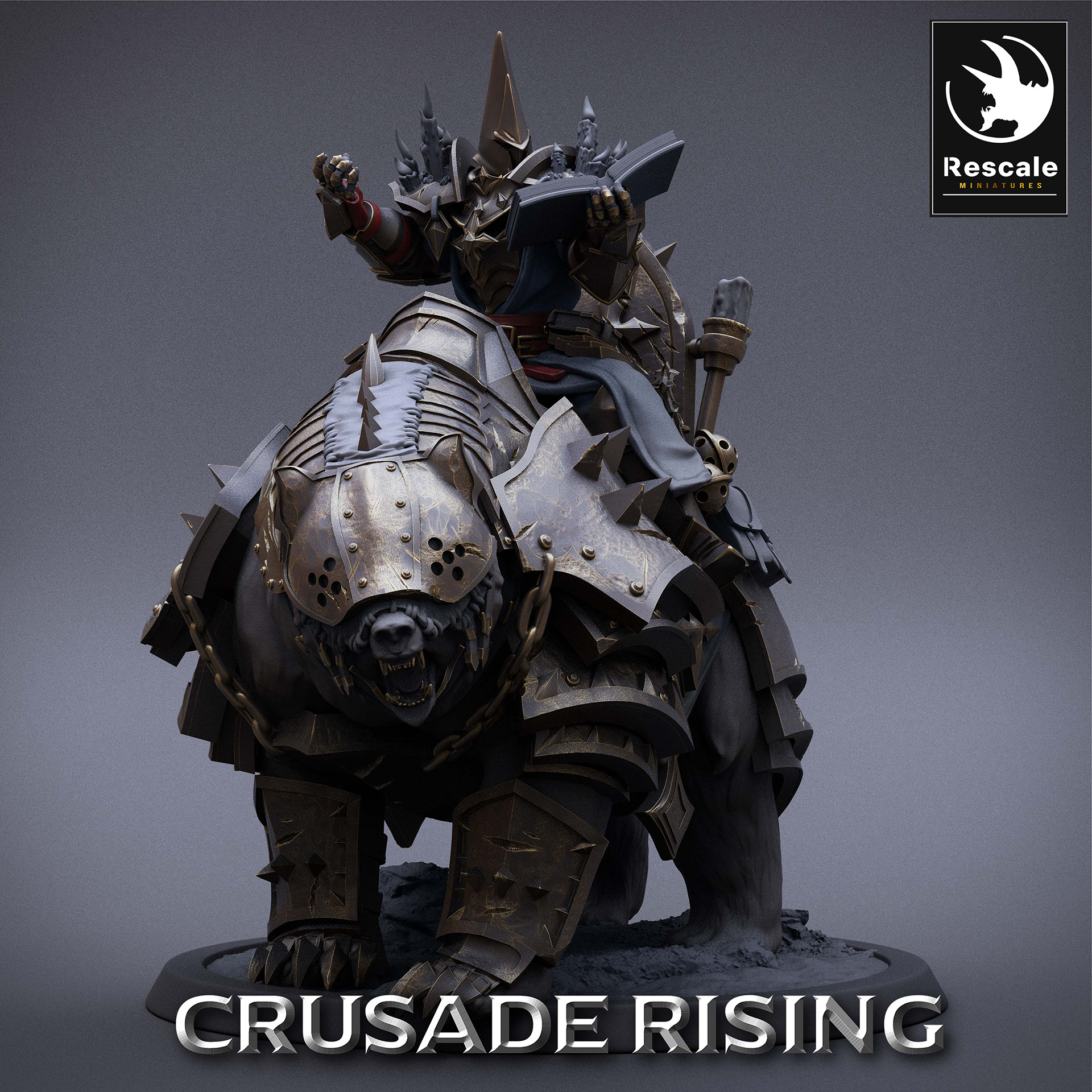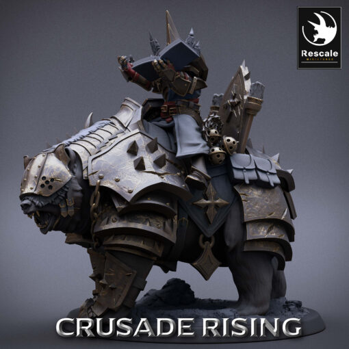 La miniatura representa al Rey de los templarios montado en oso con una peana de 1 pulgada y escalado a 28mm.