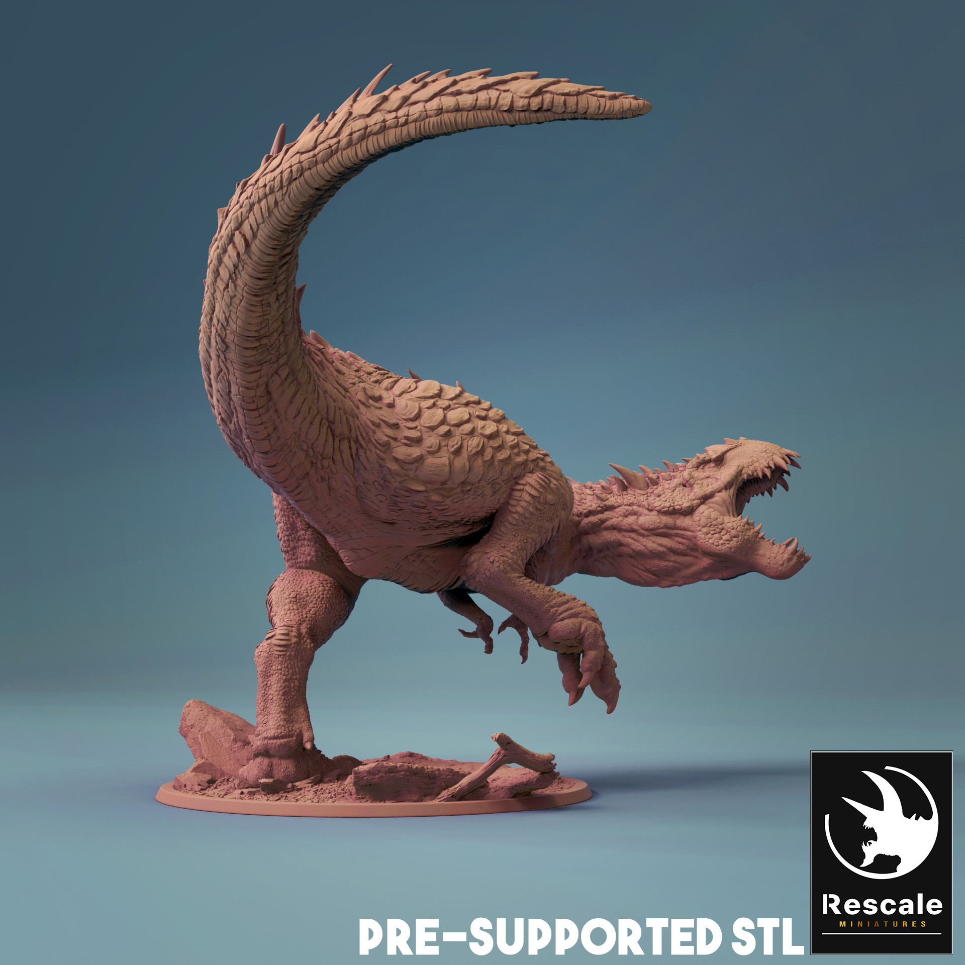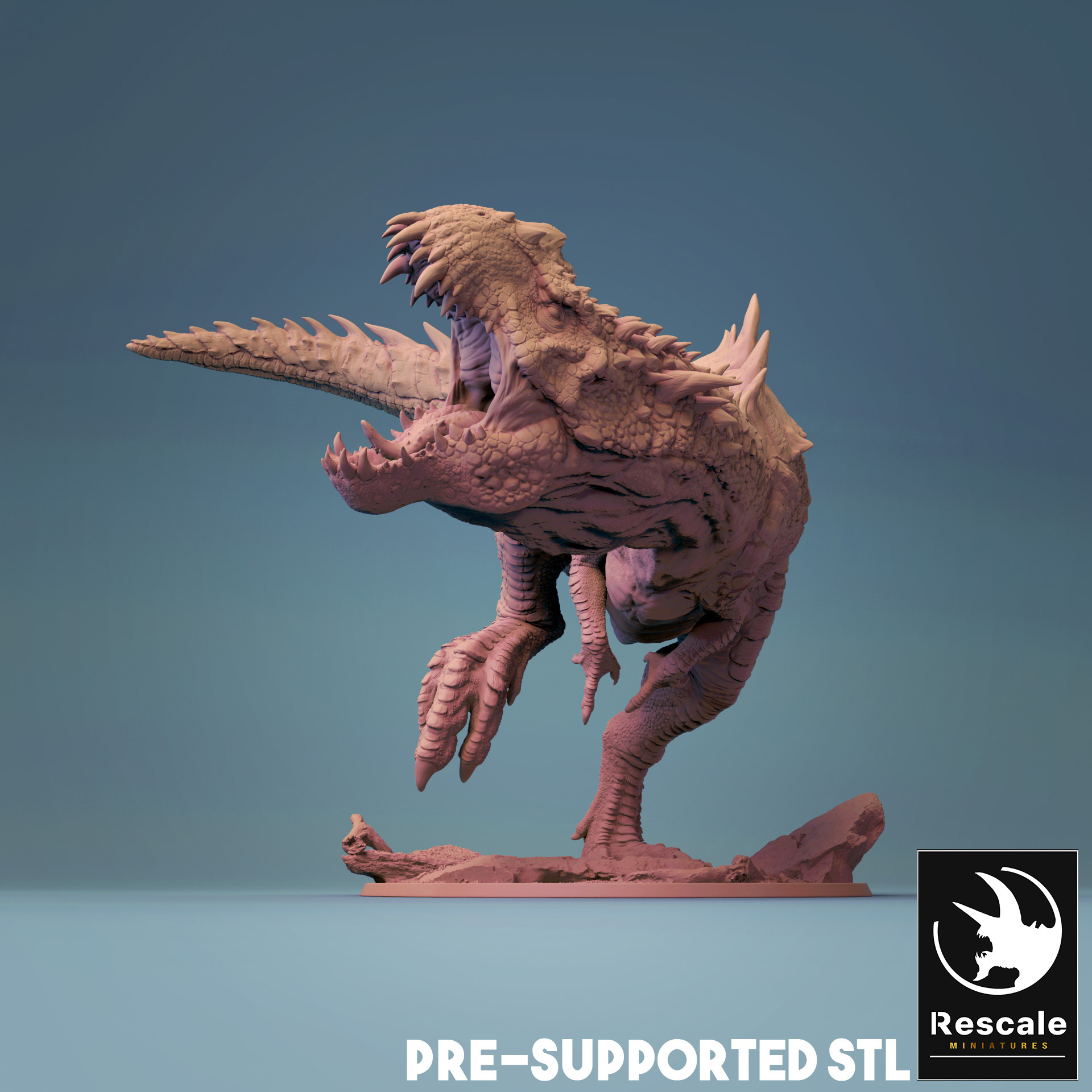 La miniatura representa a un Tiranosaurio Rex, con una base de 100mm.
