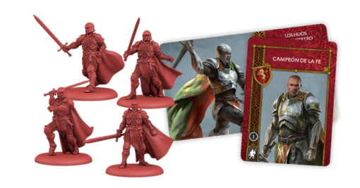 Los Hijos del Guerrero han renunciado a sus muchos títulos para servir a los Siete y han consagrado sus dotes caballerescas y la fuerza de sus armas al Septón Supremo y la noble causa de la Fe. Su pesada armadura y sus afiladas espadas, combinadas con su inquebrantable devoción, los convierten en una vanguardia perfecta para cualquier formación de Fieles. Ya sea en asalto o en defensa, se puede confiar en que los Hijos avanzarán o mantendrán la posición con igual maestría. Incluso cuando son aventajados por innumerables enemigos, los Hijos permanecen inalterables. Cuanto más desesperada es la situación, más resuenan sus oraciones. Y esas oraciones nunca caen en oídos sordos.