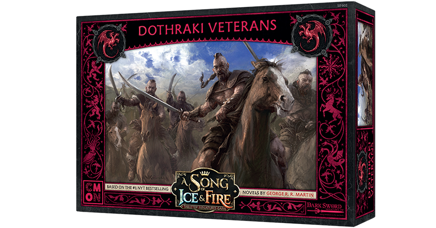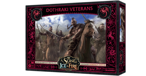 En el campo de batalla, los veteranos Dothraki hacen alarde de unos niveles nunca vistos de maestría en el arte de la equitación, que además combinan con años de destreza en combate. Expertos en el uso tanto de la espada como del arco, los veteranos Dothraki debilitan a sus enemigos con una lluvia de letales flechas antes de cargar contra ellos mientras golpean a diestra y siniestra con sus afiladísimos arakhs. Los veteranos están en su salsa cuando se sumen en turbulentos combates cuerpo a cuerpo donde hombre y montura coordinan sus movimientos con una precisión perfecta. Esto hace que no tengan que depender de una armadura para librarse de gran parte de los golpes que resultarían mortales, sino que se valen de su experiencia y su extrema agilidad para ello. Sin embargo, ni siquiera a estos temibles Dothraki les conviene enzarzarse en un combate cuerpo a cuerpo prolongado, lo cual es un hecho que todo comandante sensato debería tener presente en todo momento.