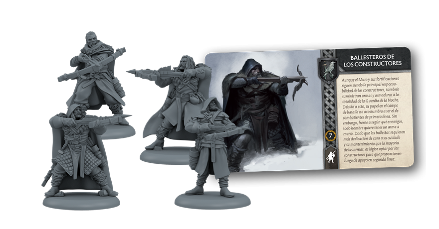 Los constructores son la elección lógica para hacerse cargo del grueso del fuego de apoyo de la Guardia de la Noche. En el campo de batalla, mantener en buen estado las ballestas puede resultar difícil, además de que su uso requiere entrenamiento especializado y un ojo experimentado. Debido a esto, son perfectas en manos de los constructores, especialmente porque la función de dar fuego de apoyo de largo alcance los mantiene alejados de la línea del frente, donde las bajas en combate pueden ser elevadas. Se ha de poner atención en proteger a los Ballesteros de cualquier asalto directo, especialmente de la caballería. Sin embargo, un comandante experto puede posicionar a sus Ballesteros de tal forma que descarguen un letal aluvión de disparos sobre la más pesada de las infanterías sin que esta pueda contrarrestarlo de ninguna manera.