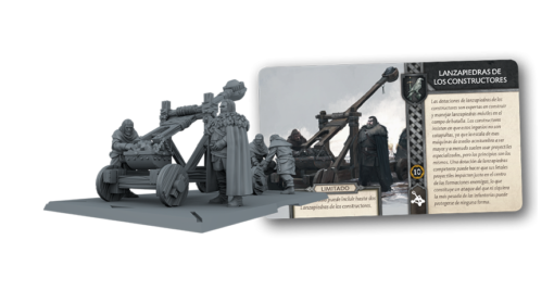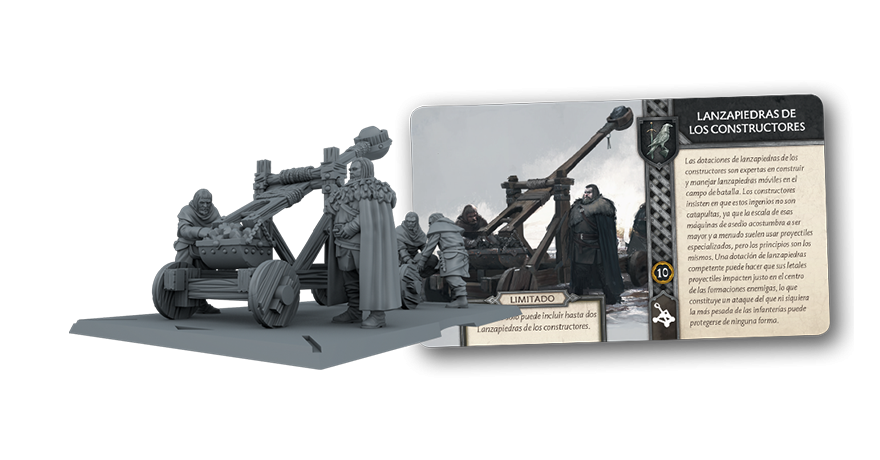 Entre los hermanos de la Guardia de la Noche, sigue siendo motivo de risas por lo bajo que las dotaciones de los lanzapiedras de los constructores insistan en que, sin duda, sus máquinas de asedio móviles no son catapultas. Dichas dotaciones sostienen que las grandes catapultas que defienden el propio Muro se caracterizan por su variedad de proyectiles especializados, lo que las hace merecedoras de tan cacareado nombre. Sin embargo, cuando un lanzapiedras suelta un pedrusco de cincuenta kilos que atraviesa las filas enemigas aplastando incluso a las tropas equipadas con la armadura más gruesa, a nadie le importa mucho tal distinción. Si bien es letal y poderoso, un lanzapiedras resulta complicado de mover y es muy vulnerable a la caballería enemiga.