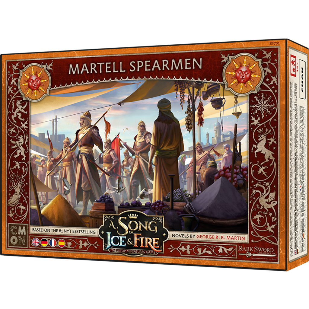 La Casa Martell es notoria por estar claramente decantada hacia uno de los extremos de la escala que mide el grado de armadura frente al de movilidad. Debido a esto, los lanceros de la Casa Martell maniobran con rapidez y han sido adiestrados para ejecutar tácticas de apoyo mutuo, pero a costa de estar equipados con una armadura inusualmente ligera para ser tropas de primera línea. Sin embargo, gracias a sus características lanzas, pueden parar en seco las cargas enemigas; además de que su superioridad numérica les permite conformar el grueso de cualquier línea de batalla Martell. Todo esto convierte a los lanceros Martell en una unidad que, si cuenta con los efectivos necesarios, puede mantener firme el frente de su ejército y, al mismo tiempo, reaccionar con presteza a cualquier suceso que sobrevenga en el campo de batalla. En cualquier caso, conviene que su comandante les preste apoyo en todo momento, ya que así pueden desempeñar su función de la mejor manera posible.