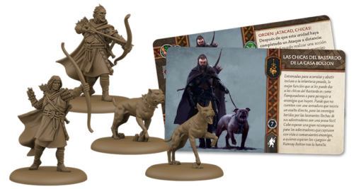 Aunque la mayoría de los perros de guerra casi nunca reciben entrenamiento antes del inicio de las hostilidades, Ramsay Bolton ya llevaba desde al menos una década antes de la Guerra de los Cinco Reyes dando un gran uso a las conocidas como «chicas del Bastardo» para cazar y capturar presas humanas. Entrenadas para acorralar y abatir incluso a la infantería pesada, la mejor función que se les puede dar a las chicas del Bastardo es como flanqueadoras o para perseguir a enemigos que huyen. Puede que no cuenten con una armadura que resista un asalto directo, pero los enemigos heridos por las lacerantes flechas de sus adiestradores son una presa fácil. Cabe esperar una gran recompensa para los adiestradores que capturen con vida a comandantes enemigos, a quienes esperan los «juegos» de Ramsay Bolton tras la batalla.