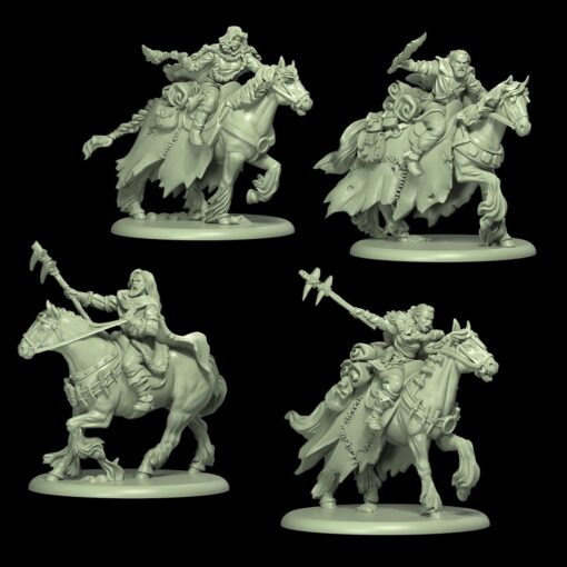 Los caballos oriundos del norte del Muro no suelen verse con frecuencia, de ahí que la vanguardia de Harma Cabeza de Perro resulte sumamente motivante para el Pueblo Libre. Comparados con sus equivalentes sureños, estos jinetes cabalgan prácticamente desprotegidos y sus armas son toscas, pero no se limitan a servir como meros batidores, sino que son tanto exploradores como punta de lanza de los ejércitos del Pueblo Libre. Aunque no hay duda de que su mayor debilidad es su carencia de armadura, es precisamente eso lo que da pie a su mayor fortaleza: una velocidad tremenda.