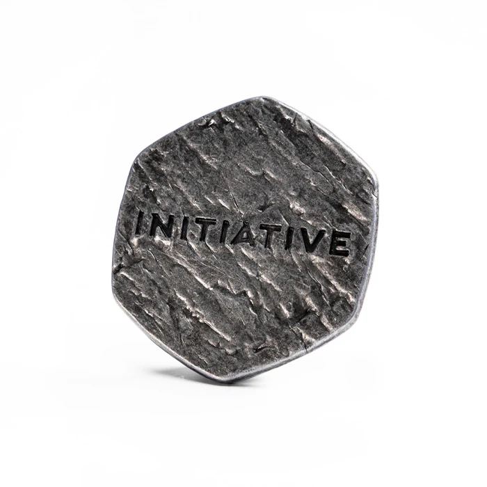 Diseñado para ofrecer durabilidad y estilo, el token de iniciativa de metal es nuestra solución premium para realizar un seguimiento de la iniciativa durante tus batallas, otorgando un peso literal a las ofertas de iniciativa del juego y reemplazando el componente de cartón tradicional con una alternativa más duradera que puede soportar innumerables sesiones de juego.