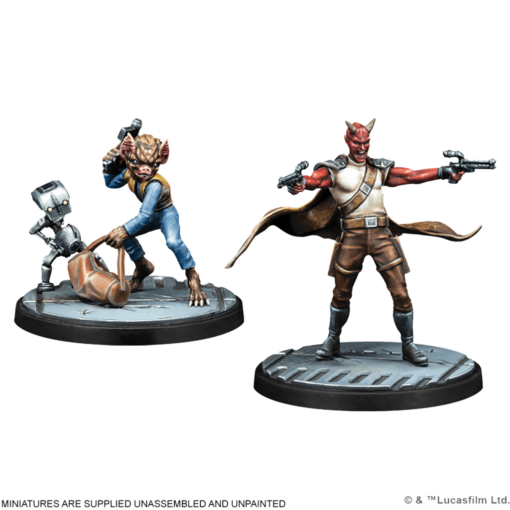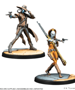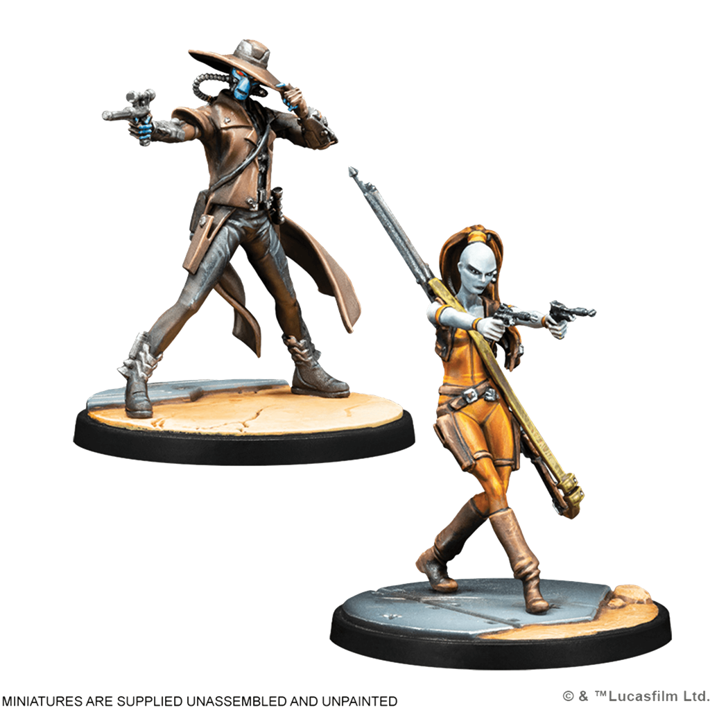 ¡Temed a los cazarrecompensas más despiadados de la galaxia! Pocos son tan infames como Cad Bane, quien suele trabajar para los clanes hutt y se ha labrado una merecida reputación en los bajos fondos de la galaxia. Tan rápido de ingenio como de reflejos, Bane prefiere utilizar un par de pistolas bláster, pero posee todo tipo de herramientas y trucos con los que vencer a sus presas, quienes a veces han sido miembros de la Orden Jedi. Su éxito también se debe a su elección de camaradas, entre los que se cuenta Aurra Sing, la francotiradora palliduviana famosa por su crueldad. Estos cazadores capturan o asesinan a los enemigos de sus viles patrones, y la única manera de estar a salvo de ellos consiste en procurar que nunca se ofrezca una recompensa por tu cabeza…